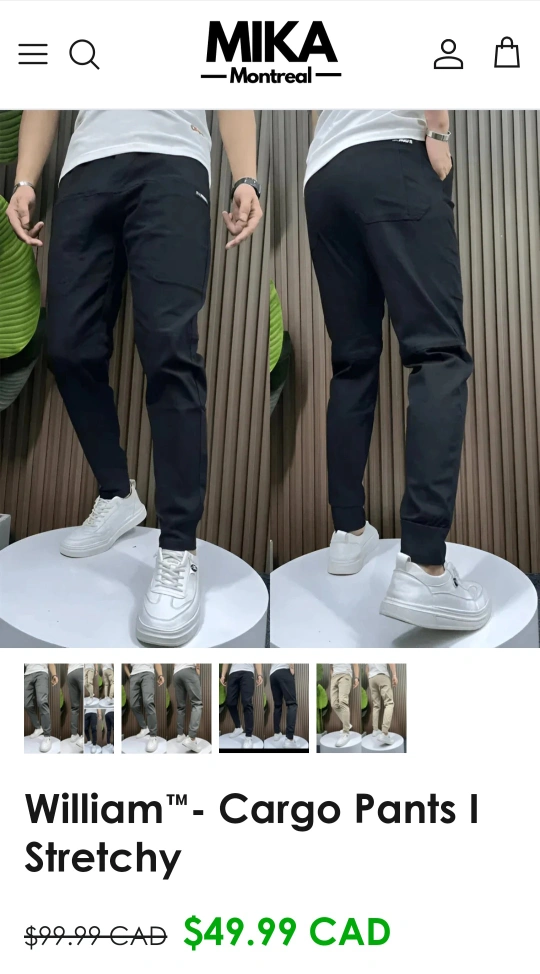 Stretch William Cargo Pants - Size 33 Brand New MIKA MONTREAL