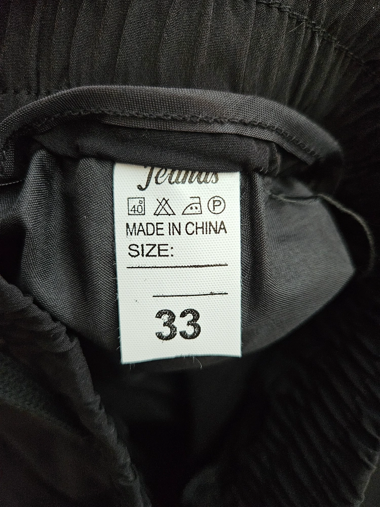 Size 33, but would likely fit waist size 30 thru 33 due to elastic waist.