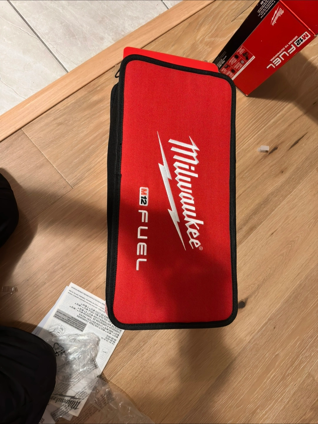 Selling a Milwaukee M12 FUEL tool bag in red and black. It's in great condition and ready to hold your tools! Perfect for keeping your M12 FUEL tools or batteries organized and protected.