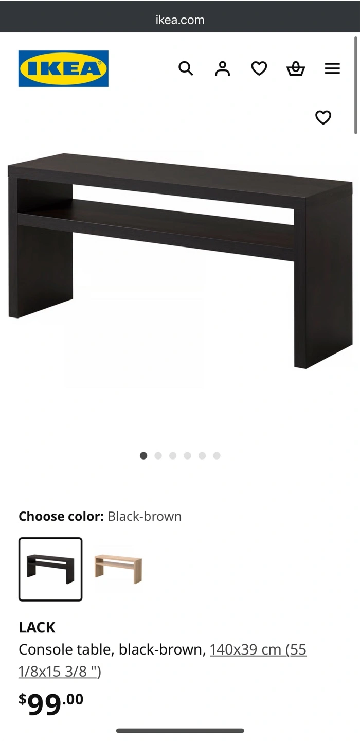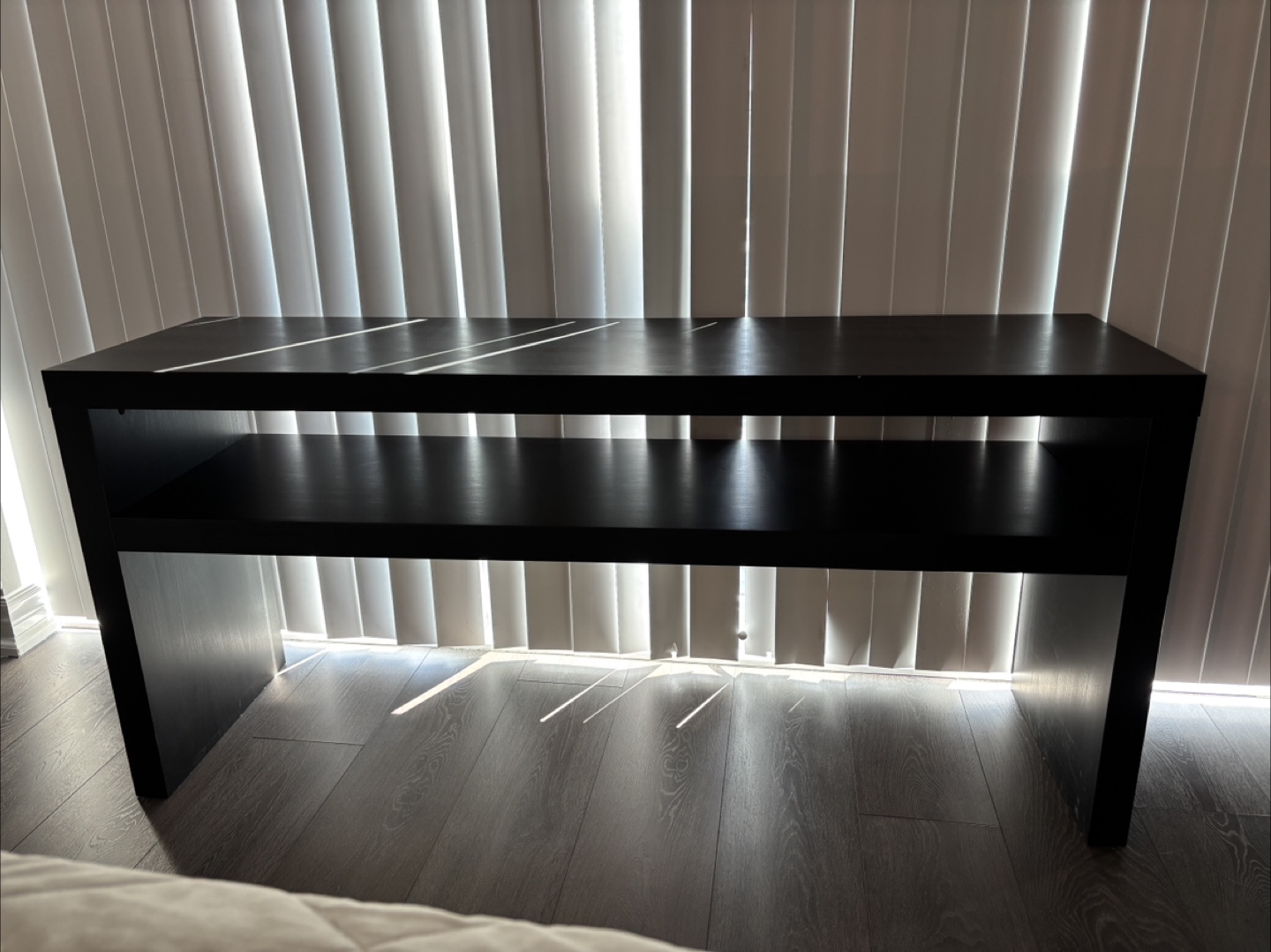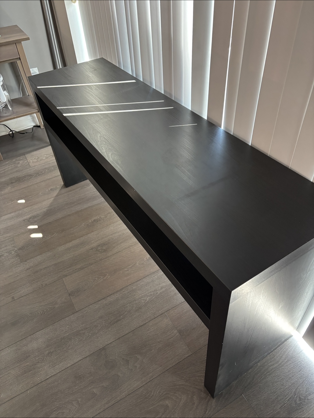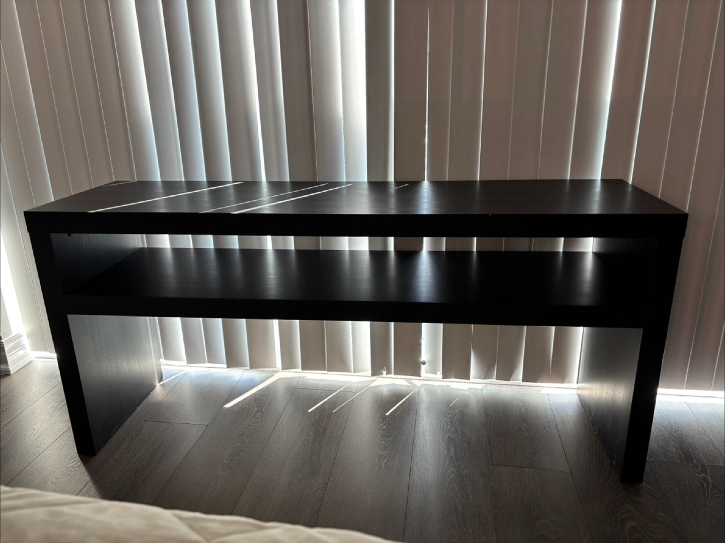 Selling an IKEA LACK console table in black-brown. It's 140x39 cm (55 1/8x15 3/8 ").