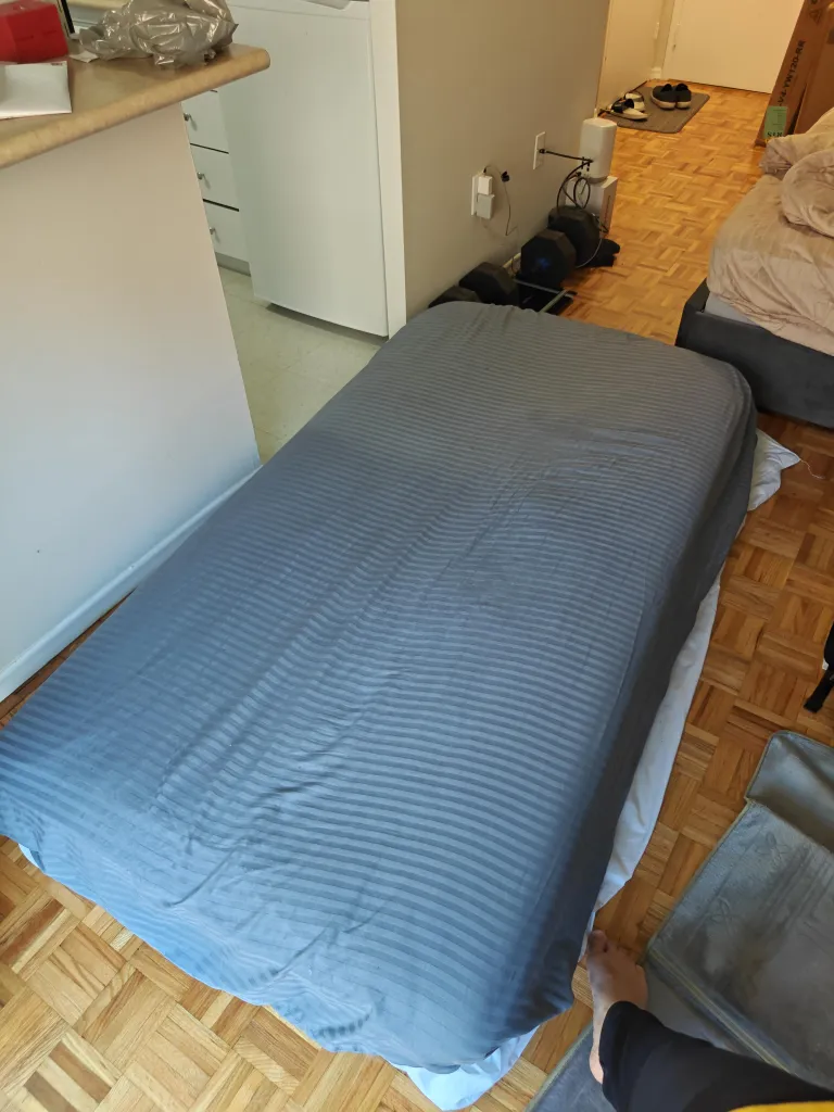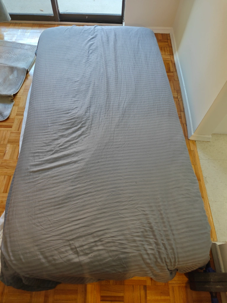 Zinus Twin Mattress - with grey cover and mattress topper