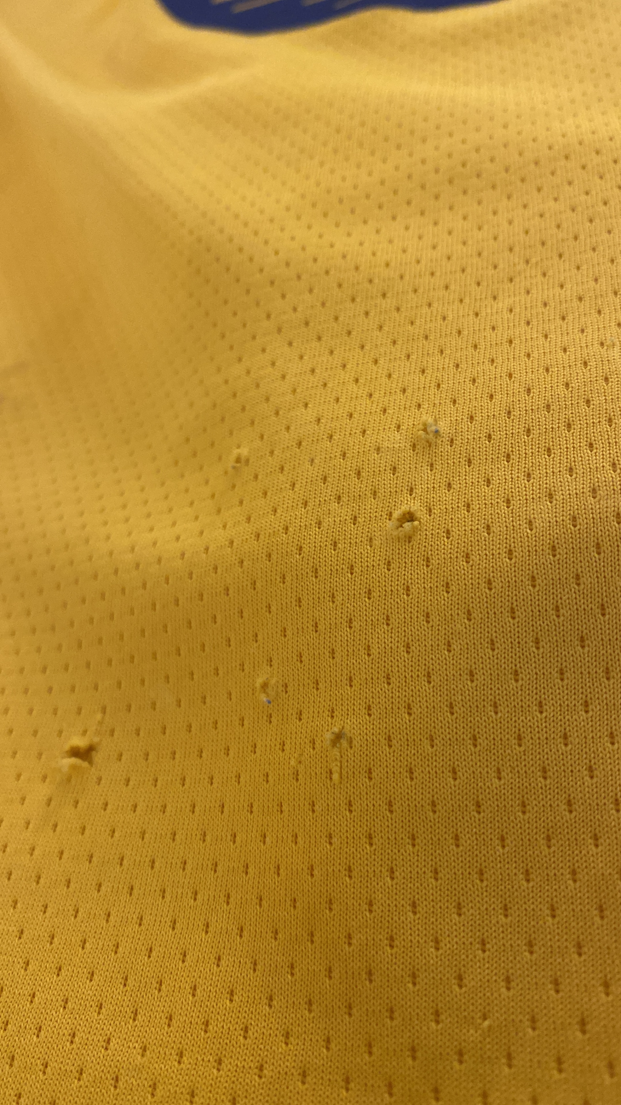 Some Holes - claw marks from a friendly cat. Stll fresh to ball in. Will smooth out eventually as the fabric is double lined.