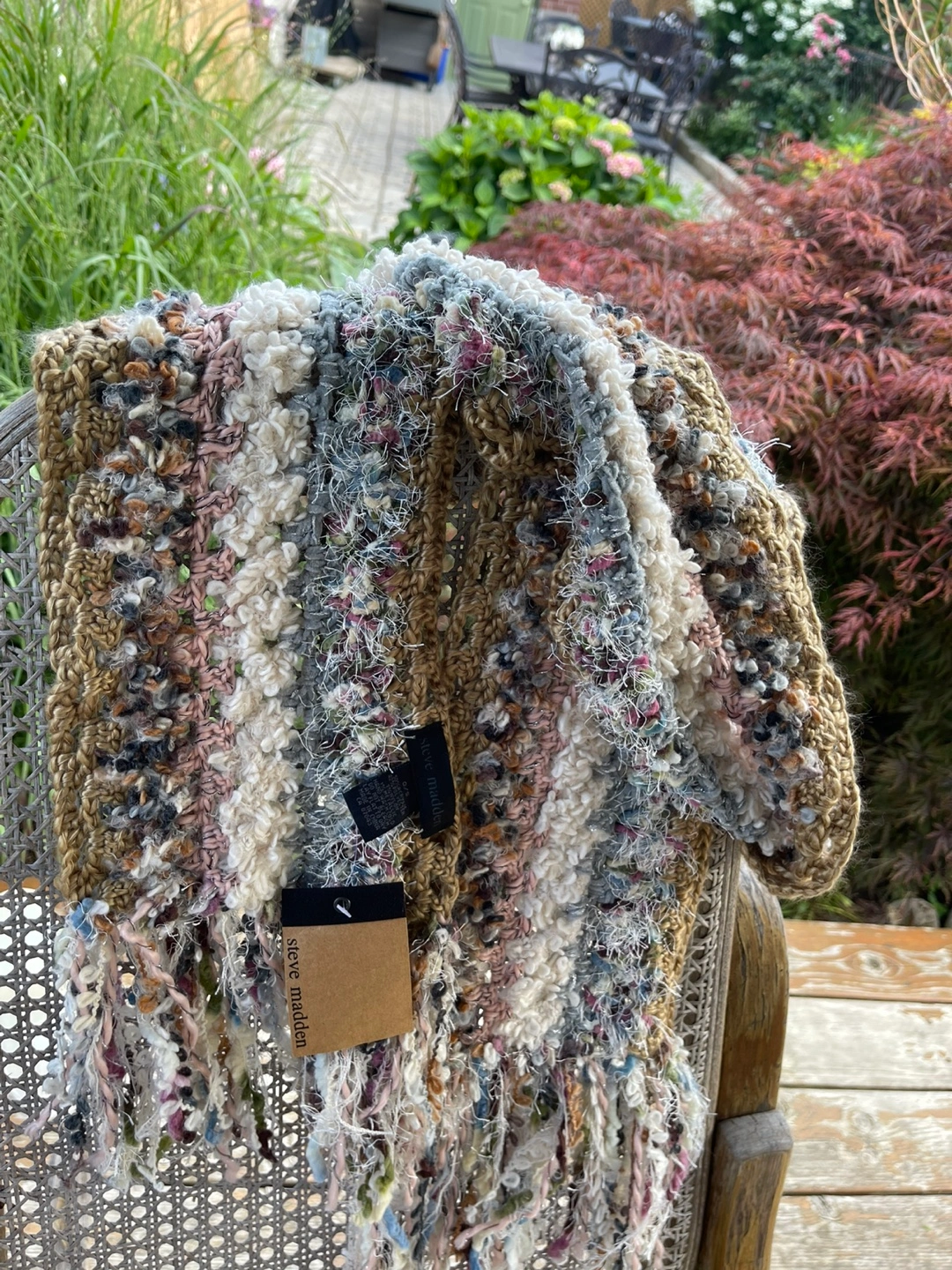 Cozy Steve Madden scarf in excellent condition! Made with a blend of 50% acrylic, 42% polyester, 7% nylon, and 1% metallic for a soft and stylish feel. Perfect for adding a touch of warmth and flair to any outfit. Porch pick up available in Etobicoke and Hamilton