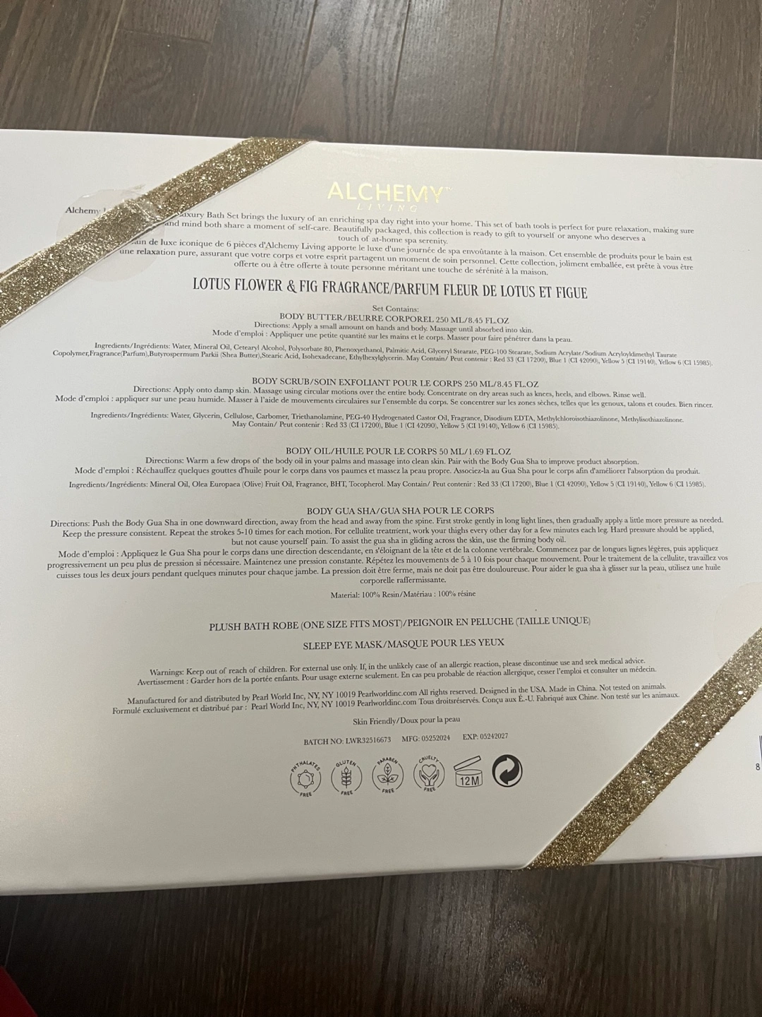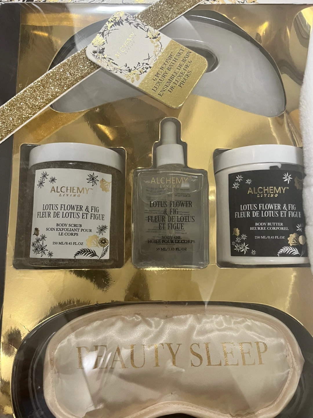 Treat yourself or someone special with this luxurious Alchemy Living bath set! This 6-piece set includes: