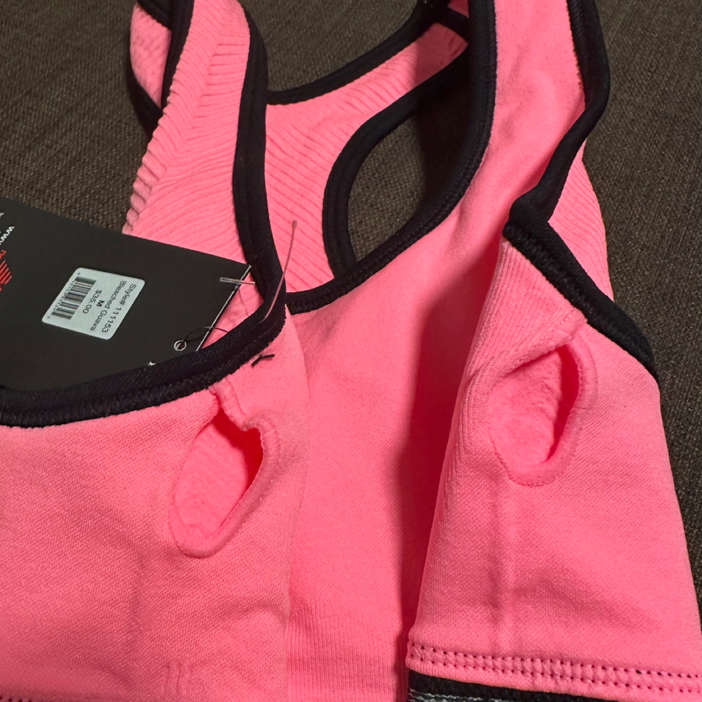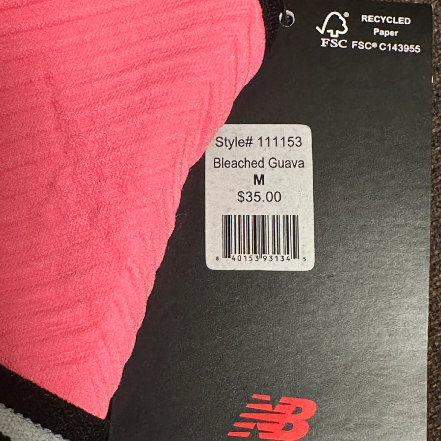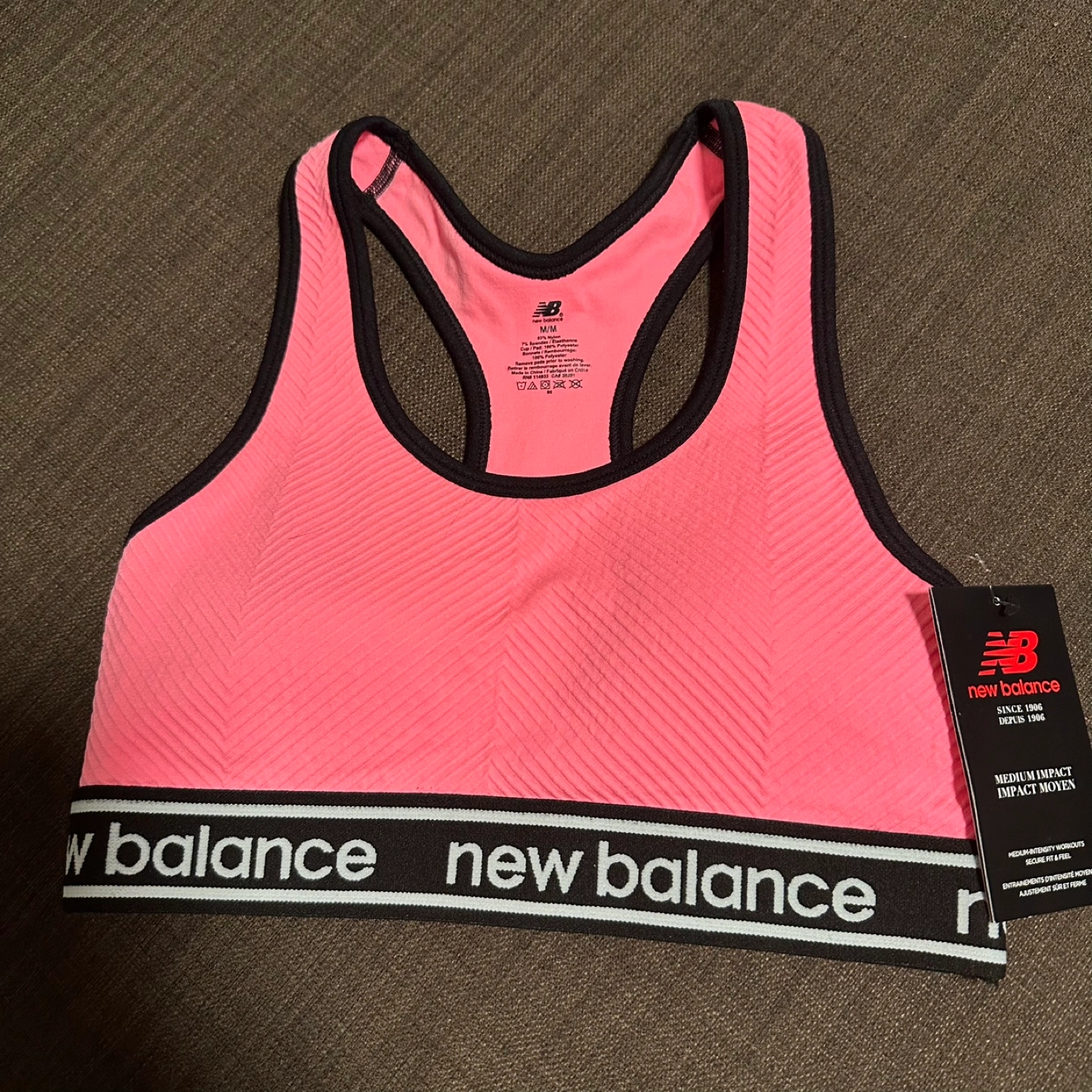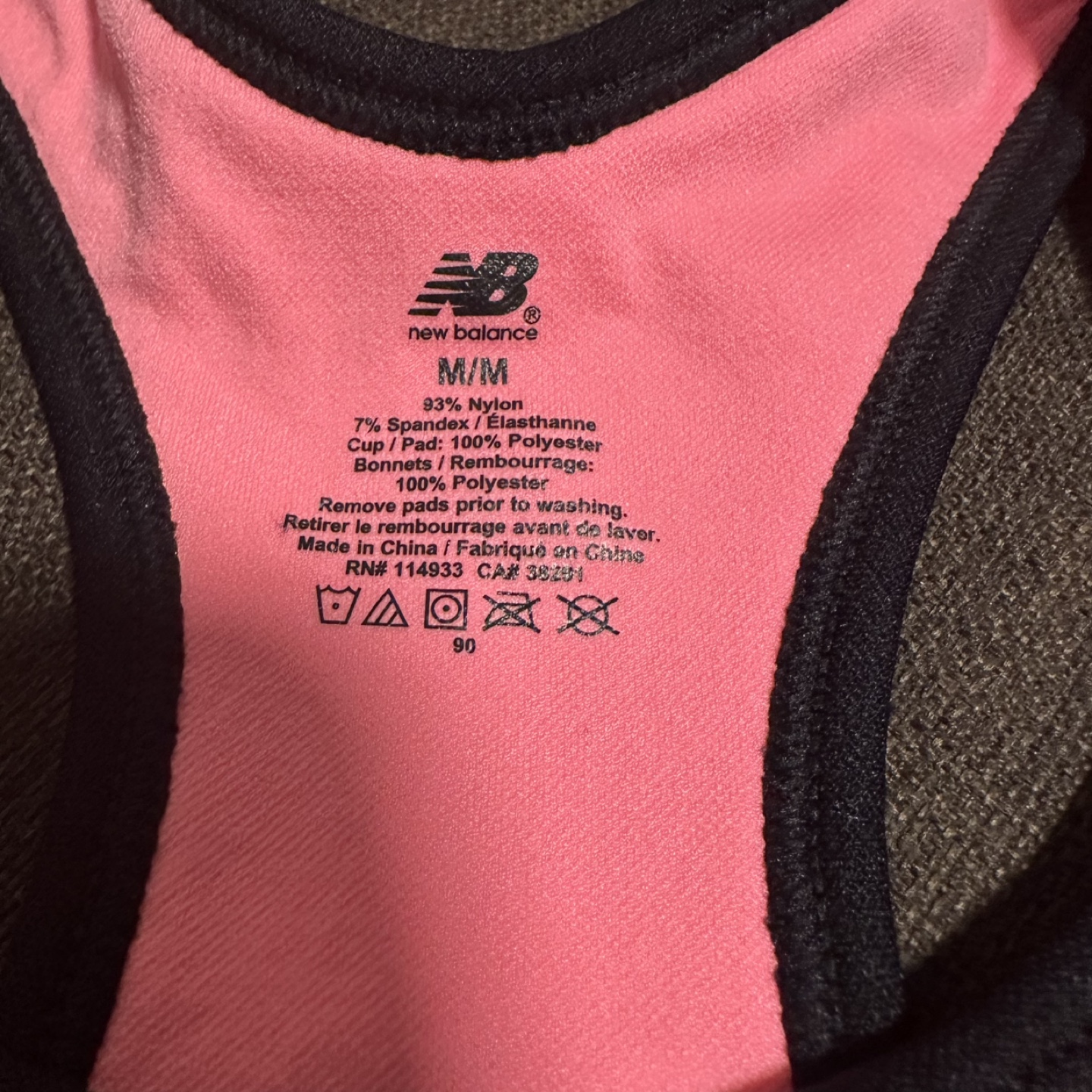 Selling a brand new New Balance sports bra in size medium. The colour is a lovely bleached guava. It's made of 93% nylon and 7% spandex, with a 100% polyester cup/pad. Originally bought for $35!