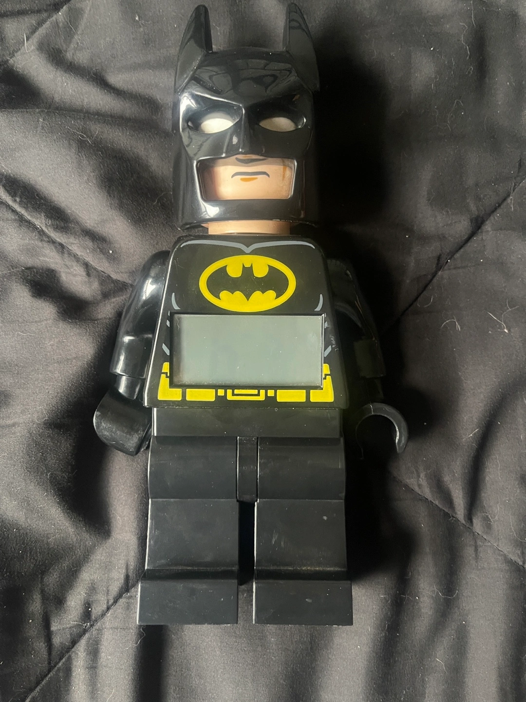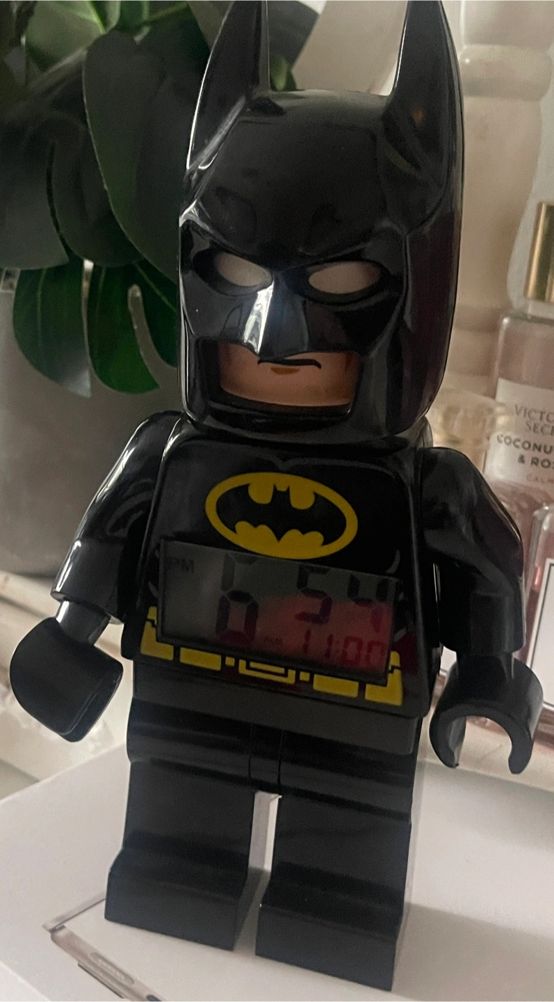Selling a Lego Batman minifigure alarm clock! It's in great condition and ready to help someone wake up on time. The clock is designed to look like a Lego Batman minifigure, making it a fun and functional piece for any Batman fan