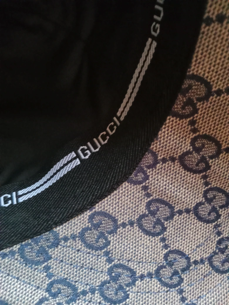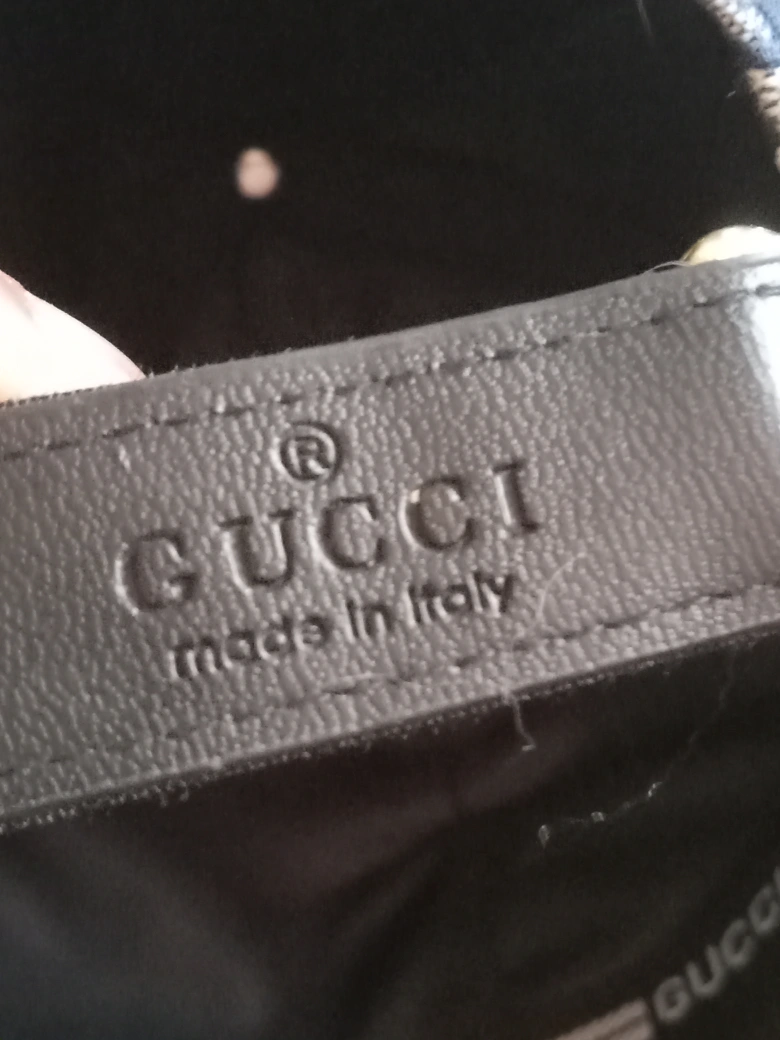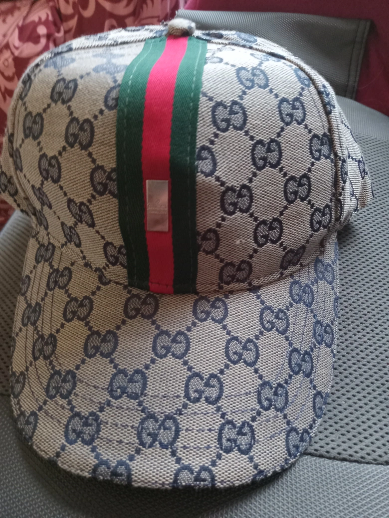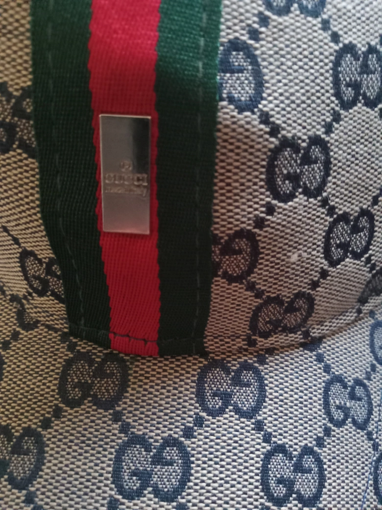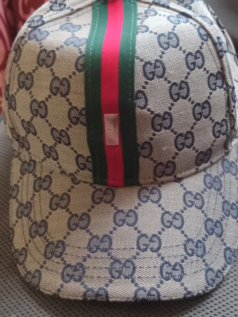 Stylish Gucci baseball cap with a unique patterned design! It features a red and green stripe detail and the classic Gucci logo pattern throughout. This cap is in great condition and ready to add a touch of luxury to your wardrobe