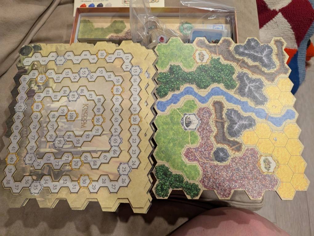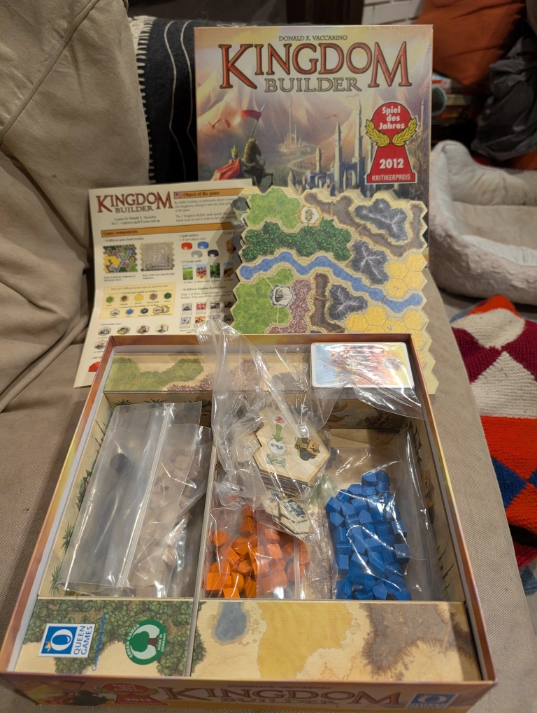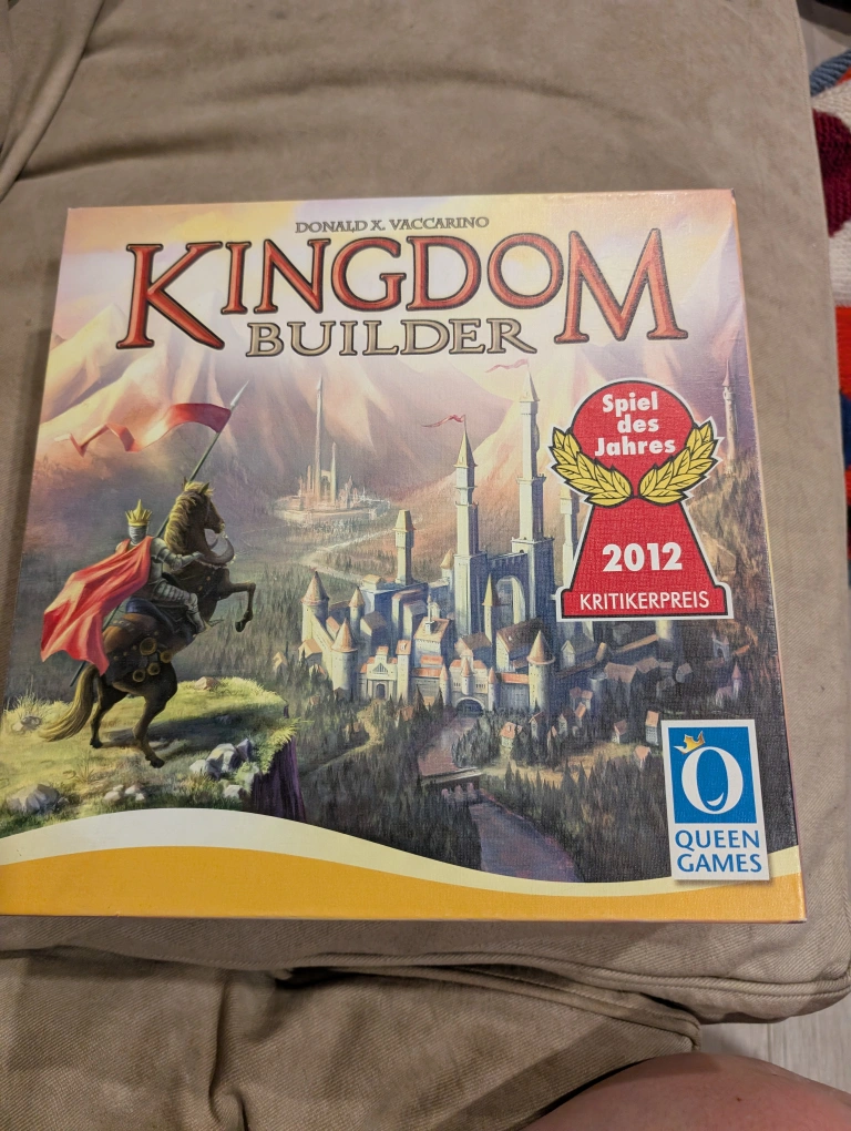 Embark on strategic conquests with Kingdom Builder, a 2012 Spiel des Jahres award-winning board game by Queen Games, designed by Donald X. Vaccarino. This used edition comes complete with all its components, ready to challenge and entertain players in a quest to build settlements and score points across a variable game board.