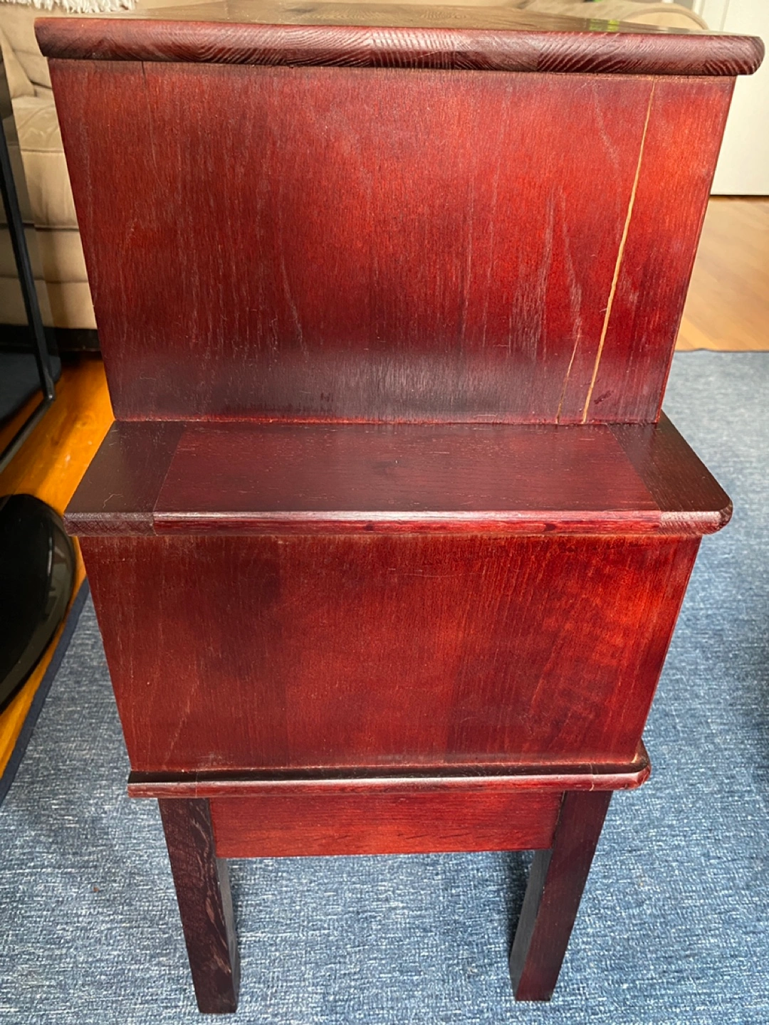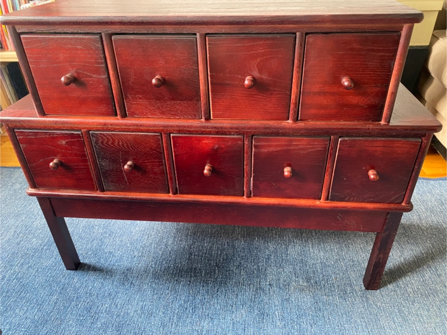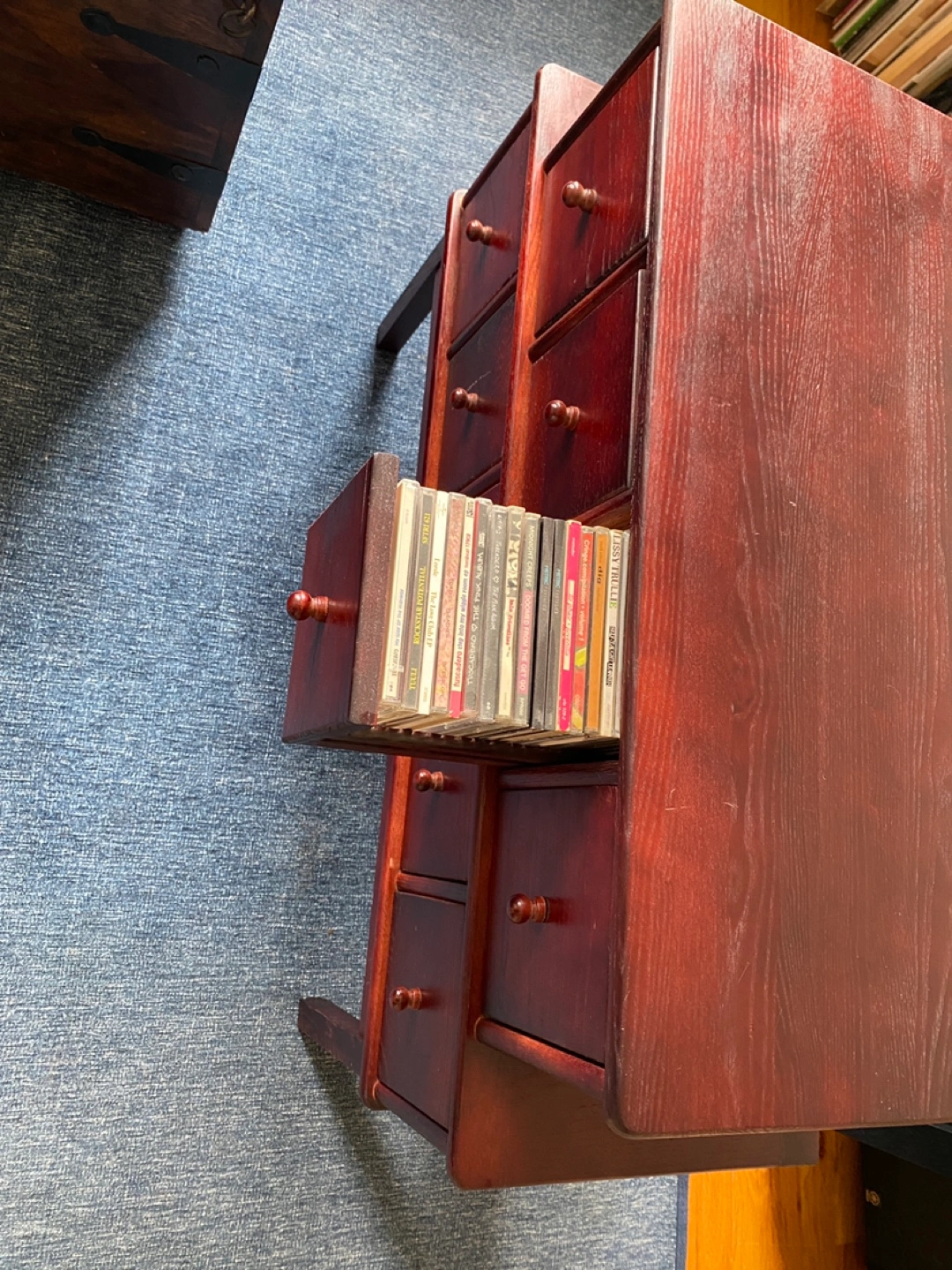 If you see the posting, it's still available. Message me a date and time you want for viewing/ pickup. First come, first served. Elevator building; dog & cat home. Wooden set of drawers. It’s the perfect height to hold a TV and the drawers are the perfect size to store CDs. One crack along the left side; visible in the photo.