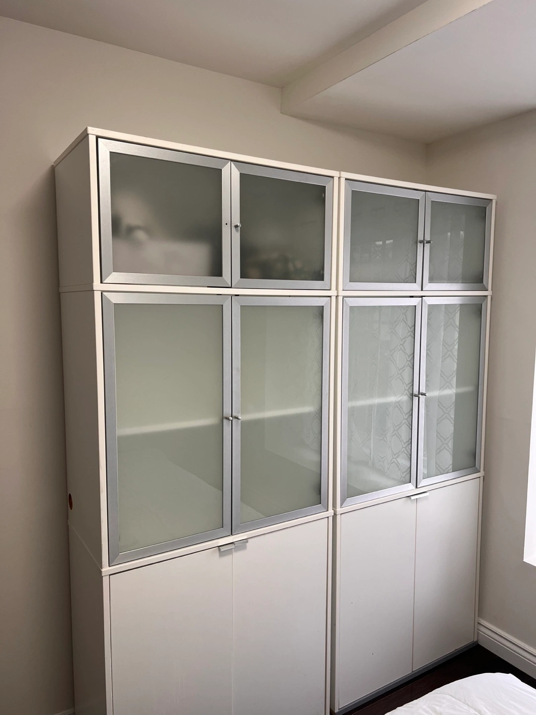 Selling a white cabinet featuring glass doors. It's in good condition and provides ample storage space for your home. Perfect for organizing your belongings while adding a touch of style to any room at $150/each