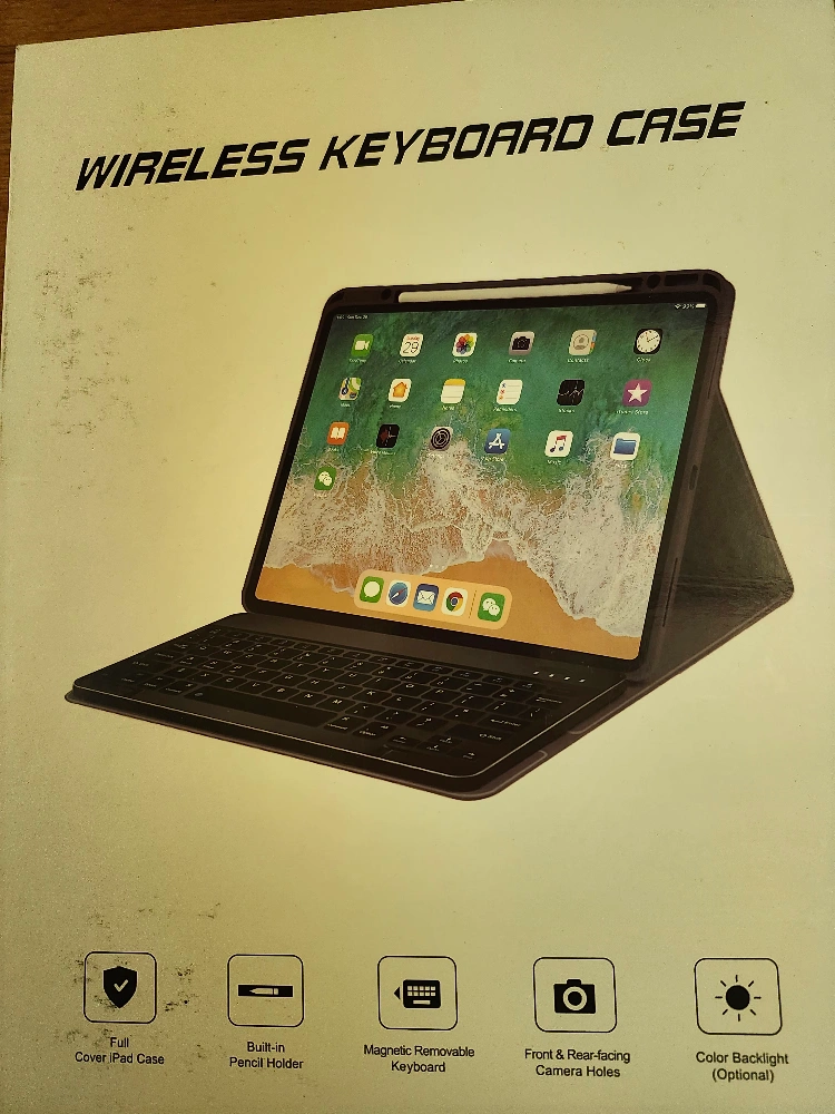 Selling a brand new iPad Pro 12.9 inch tablet cover/keyboard in black! It features a magnetic removable keyboard, front & rear-facing camera holes, and optional color backlight. Also has full cover iPad case and built-in pencil holder. Comes in its original box