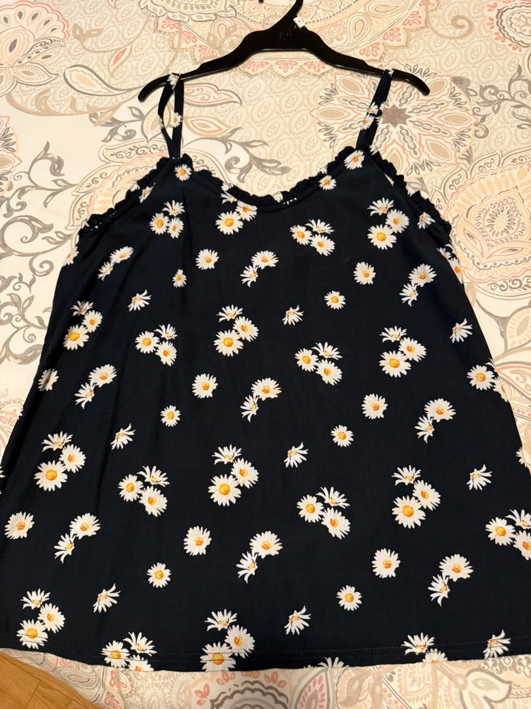 Very cute Ricki's cami top! It's black cotton from the back with an all-over daisy print on the front. The size is M. Adjustable straps. Perfect condition barely worn. Very comfy and unique.