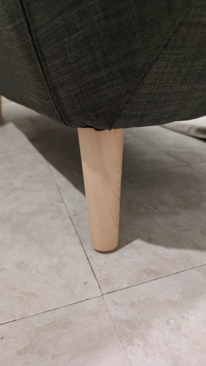 The fabric is a nice neutral grey and the legs are made of wood.