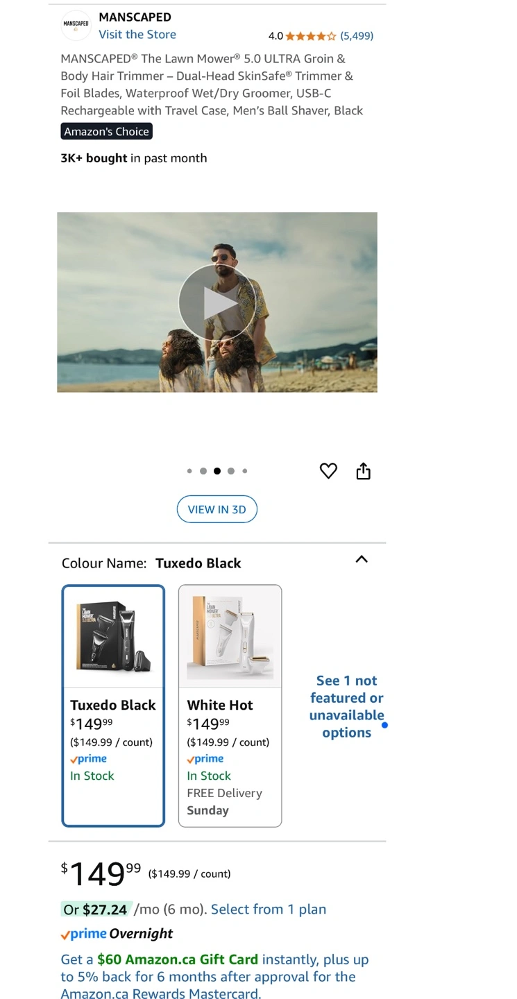 Amazon sells $150+20 tax=$170 and Manscape sells at $140 +$18 tax=$158