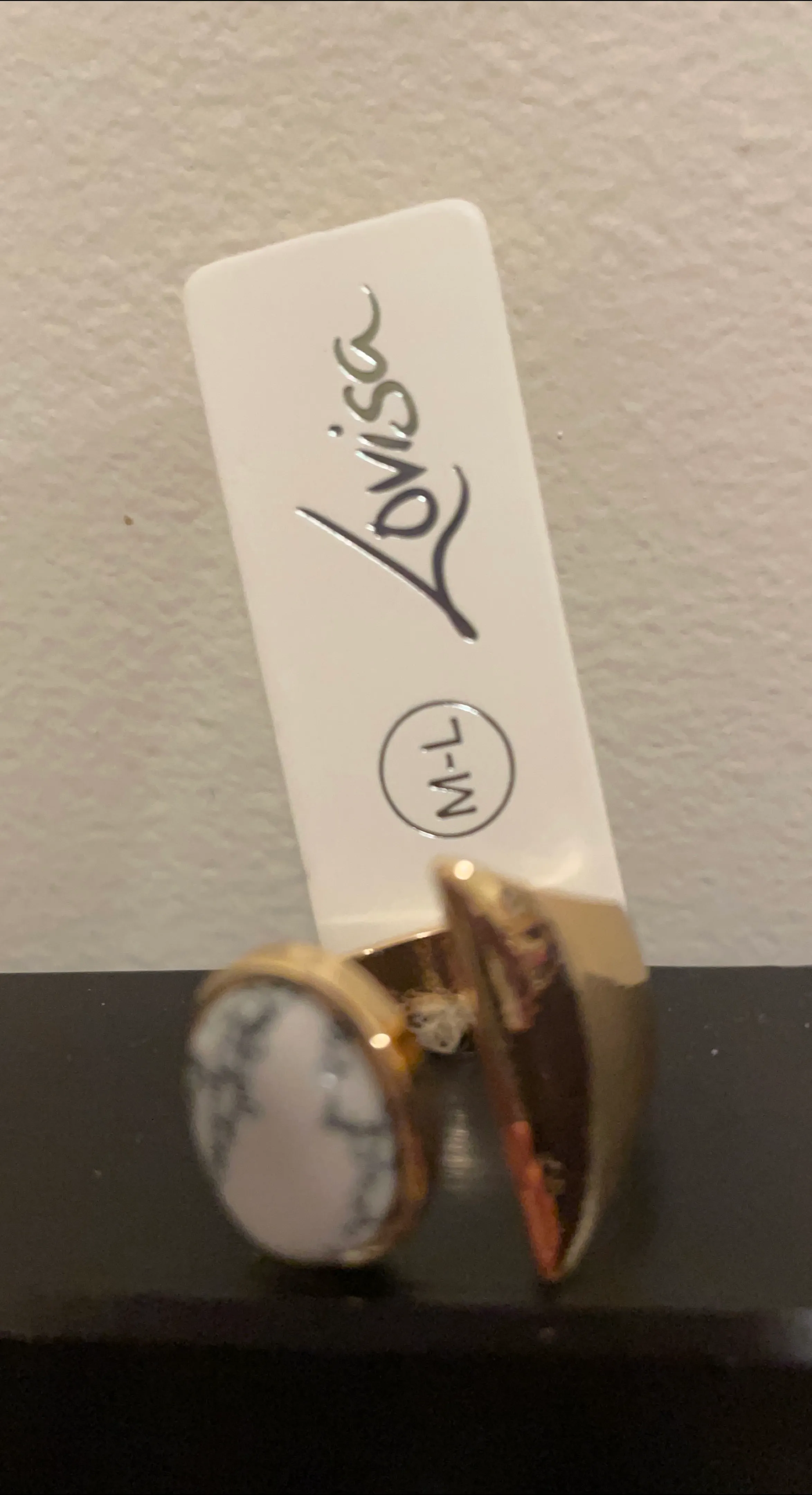 Selling a Lovisa ring in size M-L. It has a gold band with a white stone detail. Perfect for adding a touch of elegance to any outfit!