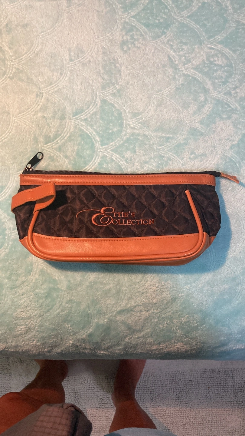 Here's a cute makeup bag from Ettie's Collection! It has a quilted design and a zipper closure. Perfect for keeping your cosmetics organized!