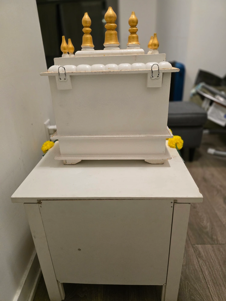 Selling a beautiful, handcrafted wooden Pooja Mandir. It's perfect for adding a touch of elegance to your home and creating a serene space for prayer and meditation. The mandir features intricate designs and a lovely colour palette. It's in great condition and ready to find a new home!