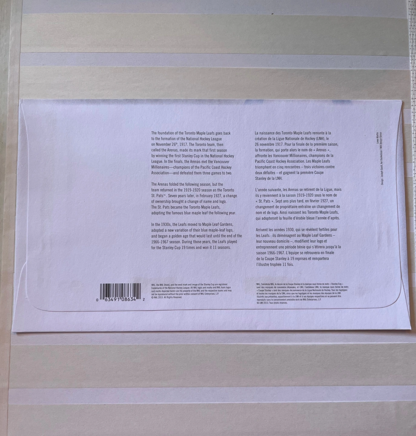 Perfect condition Toronto Maple Leafs Date of Issue Canadian Stamp (2013) on Envelope. Great to frame or gift to someone. Specs below. Asking $5