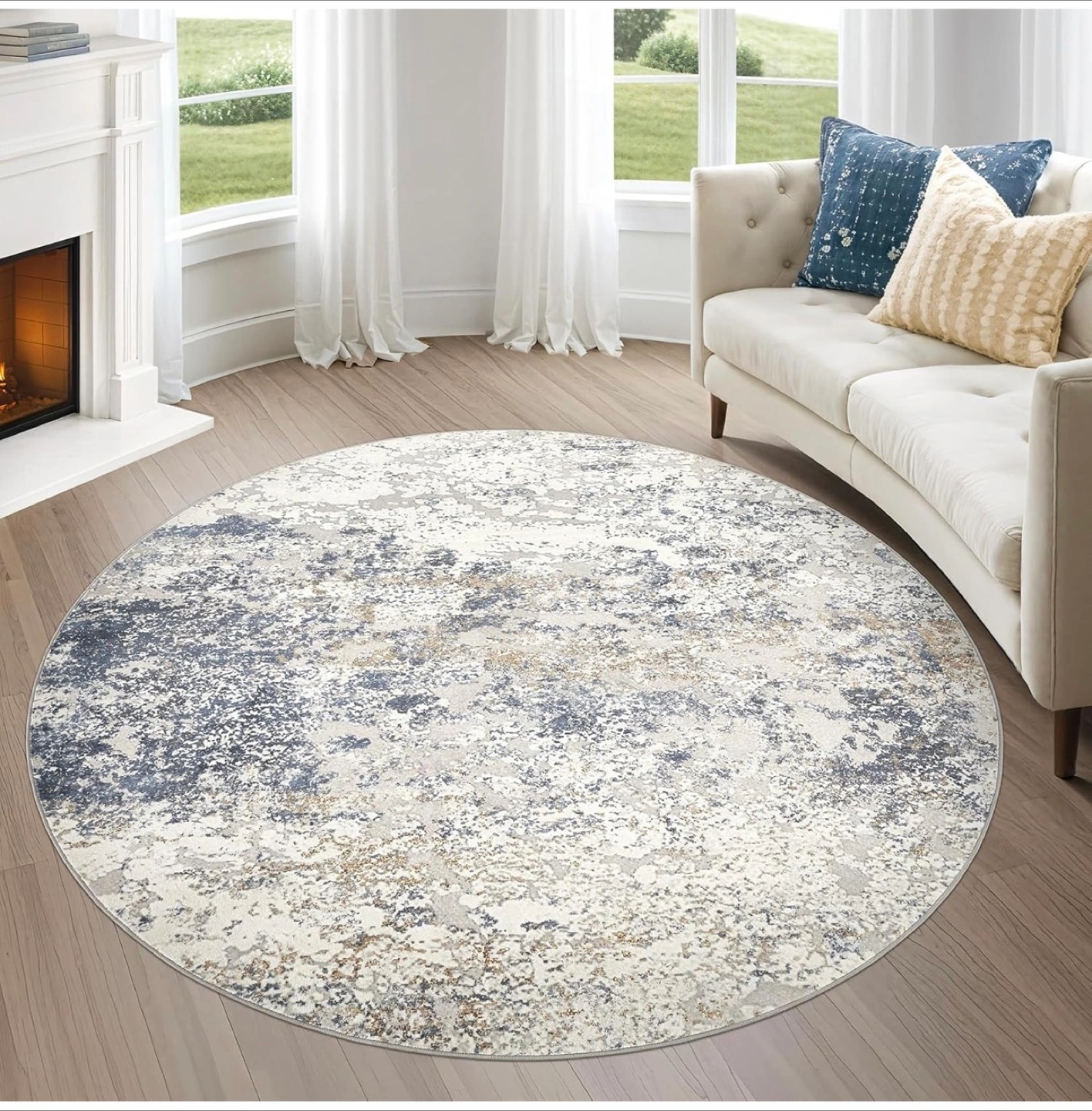 WAVVEI Abstract Beige Blue Round Rug