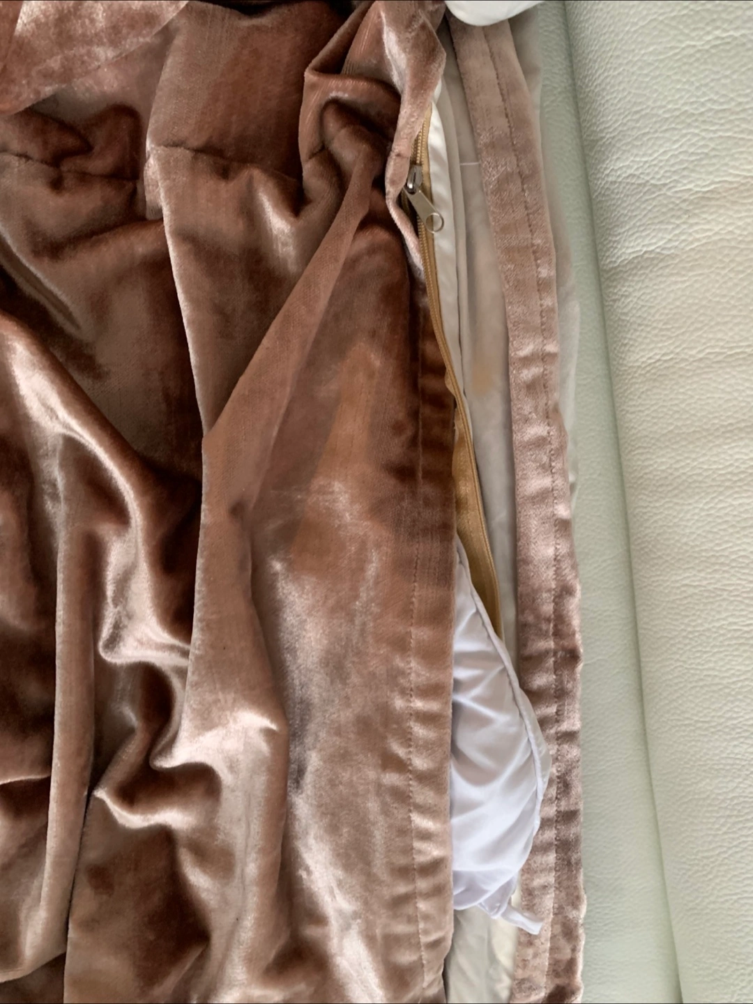 ➡️ •Colour: A mix of the 2 first pictures. This specific colour is absolutely beautiful and original. Depending on the lightning, the colour and the shimmering effect changes. Difficult to describe it. The colour and shimmering is mainly seen on pic #3, note that the duvet is NOT laying flat in this pic, therefore create more folds and creases. Colour looks like “Golden Champagne mixed w/ some Vintage rosé/peach/etc”