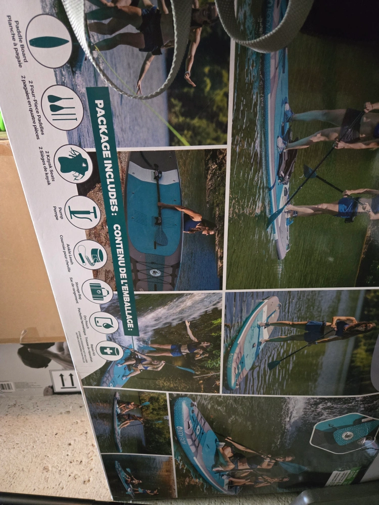 Comes with 2 paddles, 2 kayak seats, manual pump, leash and storage bag [ see pic of the naviagtor they are exact the same just different design]