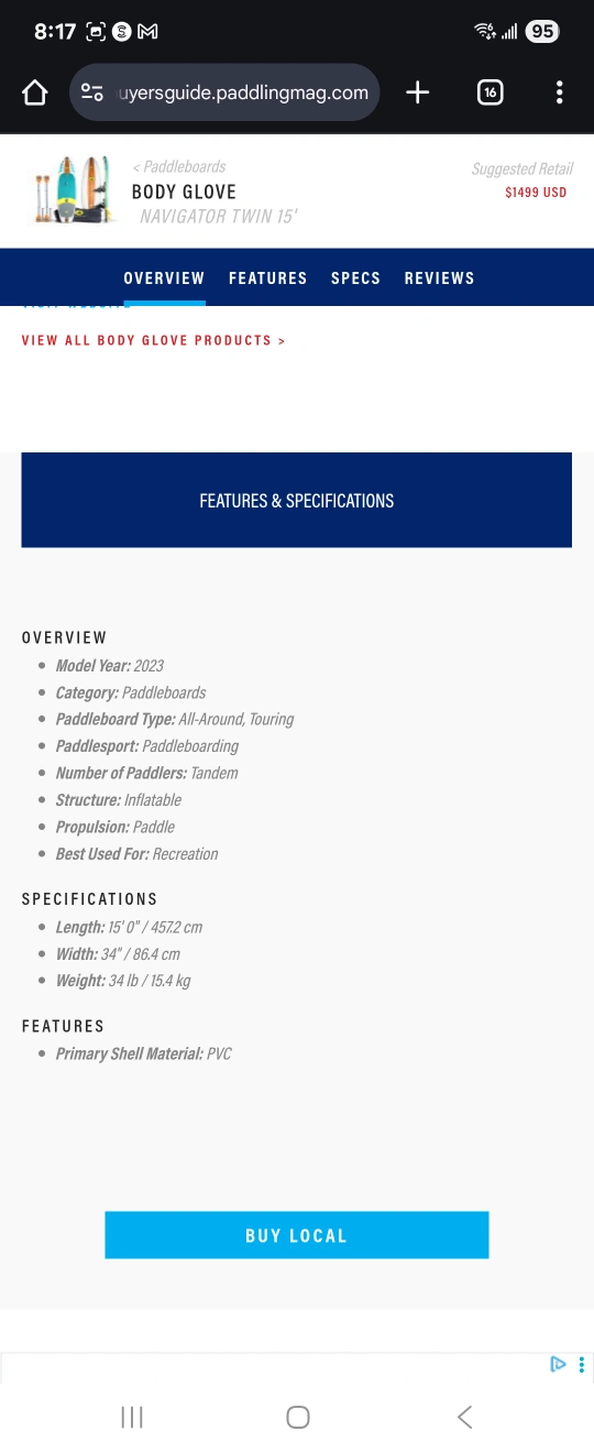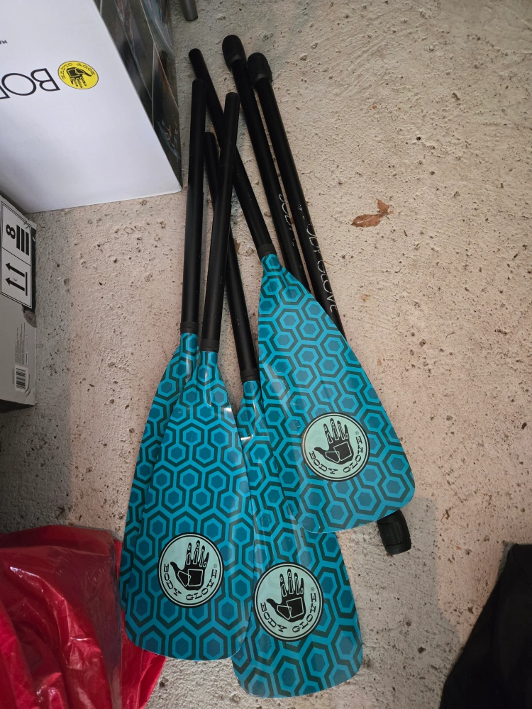 Get ready for some fun on the water with this Body Glove stand-up paddle board! It comes with paddles and a carrying bag, so you'll have everything you need for a great day out