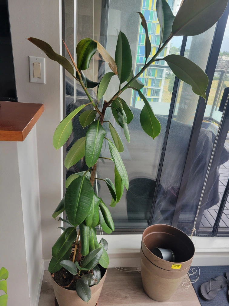 Selling a healthy rubber plant in a pot! It's a great way to bring some greenery into your space. The plant is well-cared for and ready to thrive in its new home