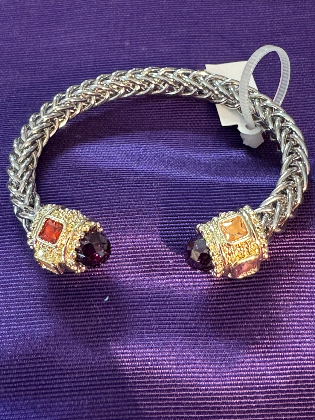 Selling this beautiful Renaissance braided AMETHYST Gemstone cuff bangle bracelet with end caps of multicolor gemstones.