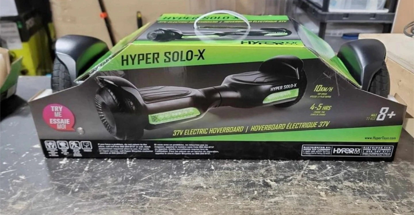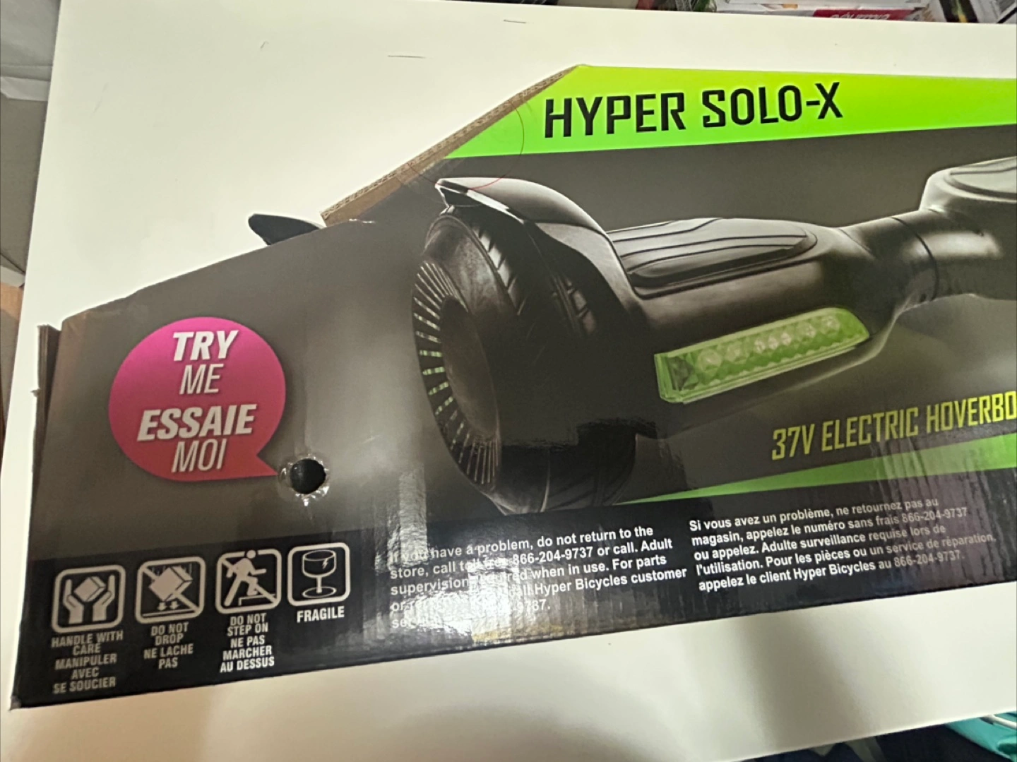 Zoom around town with this Hyper Solo-X 37V Electric Hoverboard in its original packaging! Featuring a robust 37V motor, this hoverboard promises a smooth and thrilling ride for users of all skill levels.