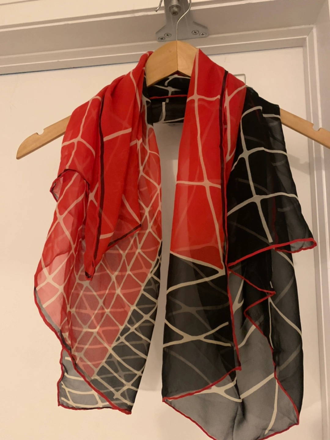 832Large square graphic print scarf. Gorgeous with a white blazer or shift dress or styled as you choose. Pick up in Roncesvalles. No holds please. Same Day/Next Day pick up preferred.