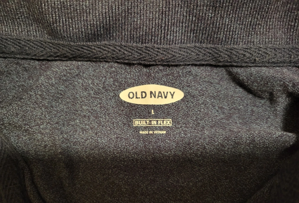 Selling a blue polo shirt from Old Navy in size L. It's in great condition and made with built-in flex material for extra comfort! Perfect for casual wear
