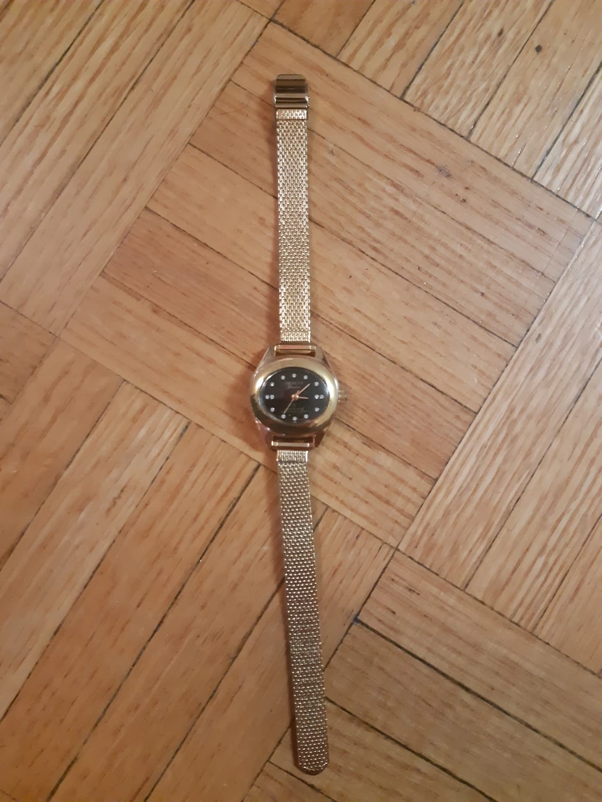 Selling a lovely gold Geneva Quartz women's watch! It's in great condition and ready for a new home. The watch features a black face with decorative stones, adding a touch of elegance to your wrist