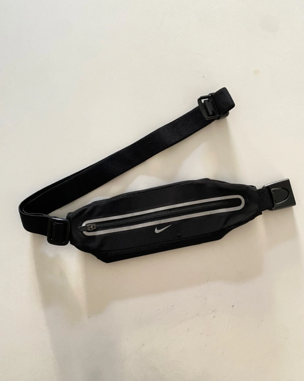 Keep your essentials secure and close at hand with this Nike running waist pack! It's perfect for your runs or workouts. The pack is black and features a zippered compartment and adjustable strap.
