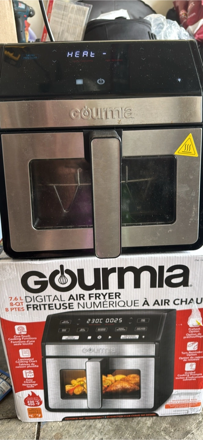 Selling a Gourmia 7.6L Digital Air Fryer. It's in great condition and ready for a new home! It has one-touch cooking functions, a laminated cooking chart, and is easy to clean