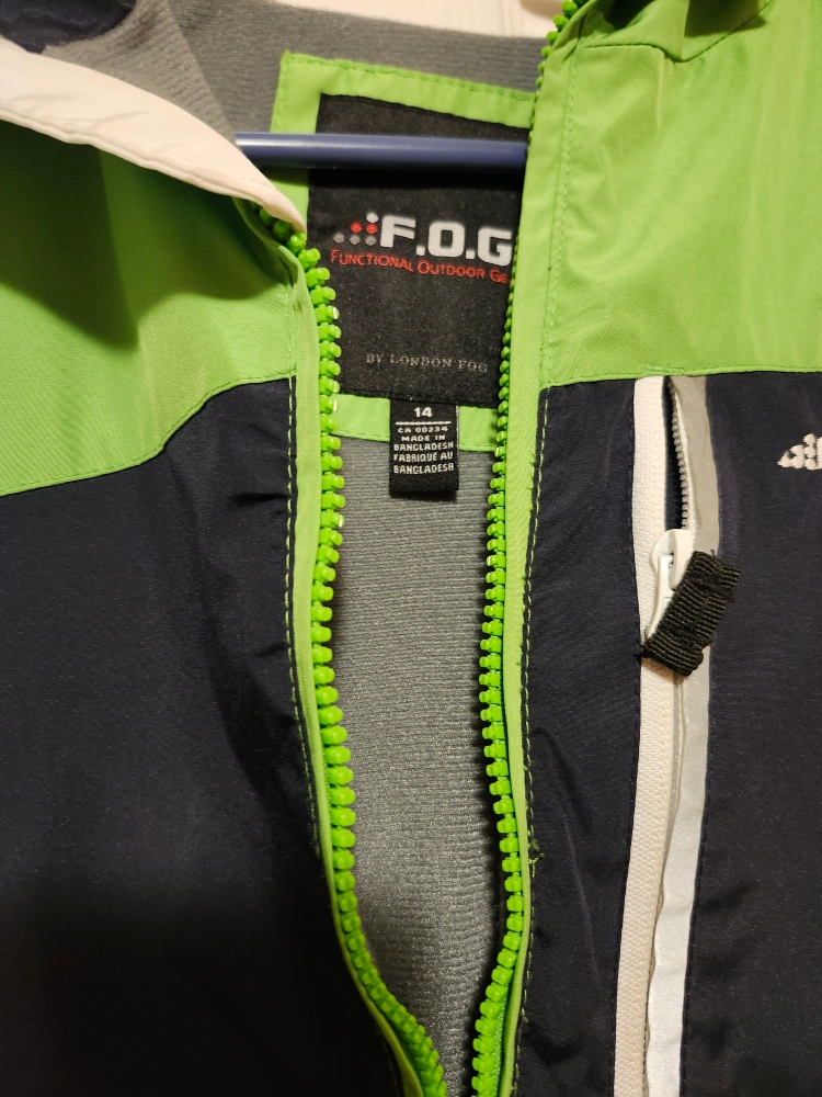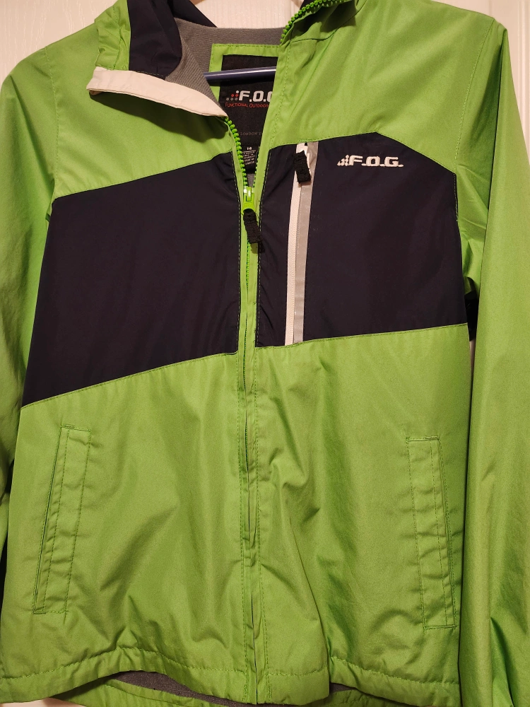 22I'm selling a F.O.G. (Functional Outdoor Gear) jacket in size 14. It's a stylish green and black colour block design, perfect for outdoor activities. The jacket is in great condition and ready for a new owner! can meet/deliver Londonderry, Northgate , Skyview areas