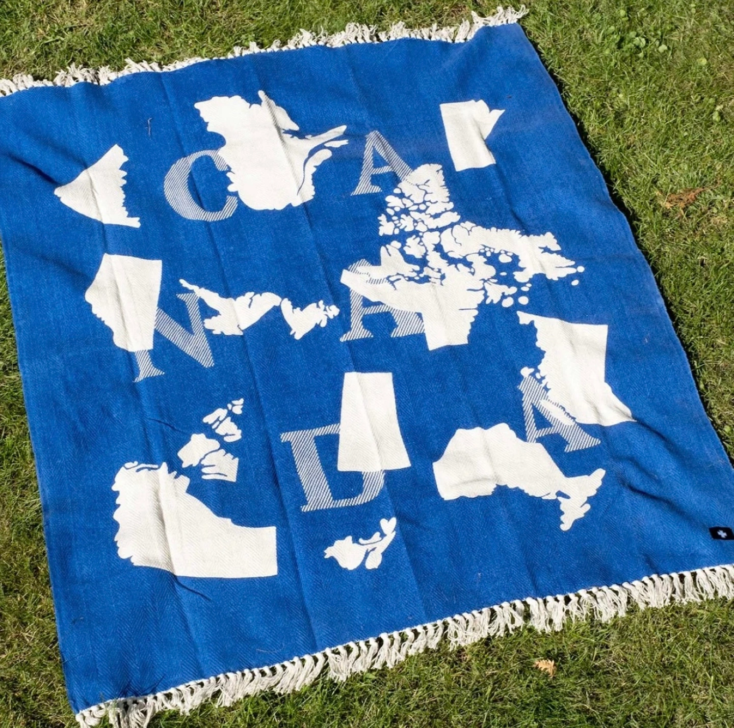 Snuggle up with this cozy Drake General Store throw blanket! It features a stylish Canada map design in blue and white. Perfect for adding a touch of Canadian charm to your home