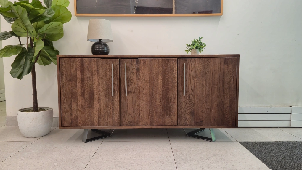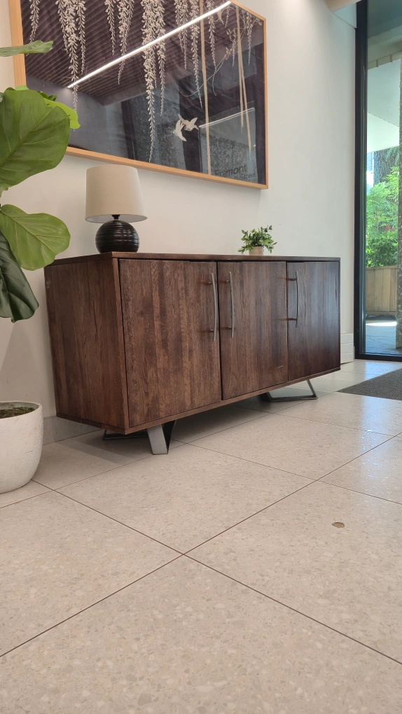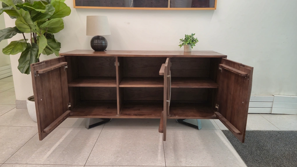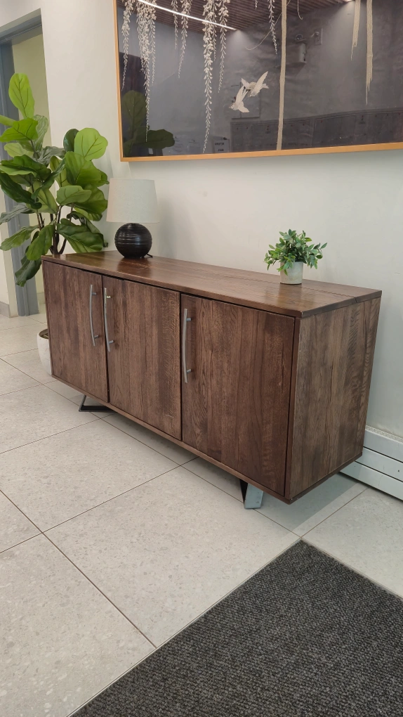 Enhance your living space with this rustic PISA Sideboard, crafted from reclaimed wood with a rich dark finish. Made in Vietnam, this piece combines functionality and modern design.