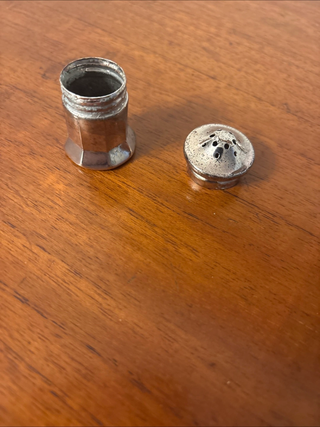 Selling a set of small vintage silver salt and pepper shakers! They have a lovely, classic design. Perfect for adding a touch of elegance to your dining table or kitchen