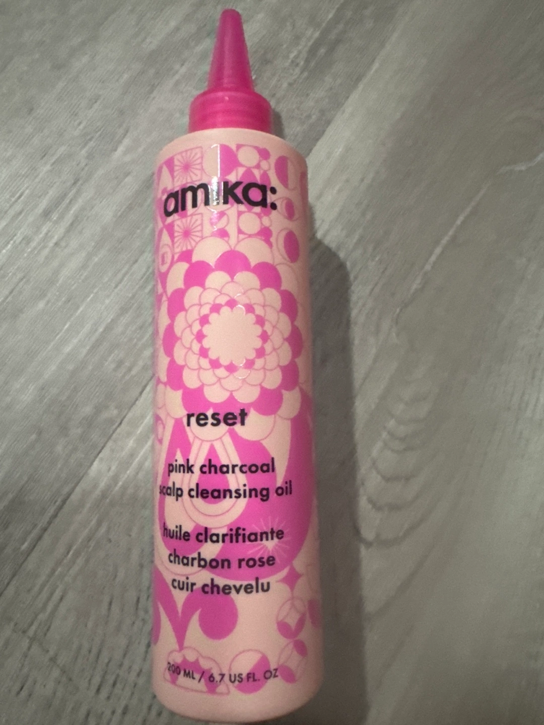 Selling a bottle of Amika Reset Pink Charcoal Scalp Cleansing Oil! It's a clarifying oil that helps to cleanse the scalp. The bottle contains 200ml / 6.7 US fl oz
