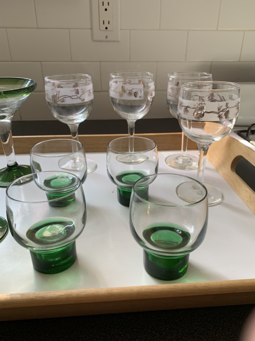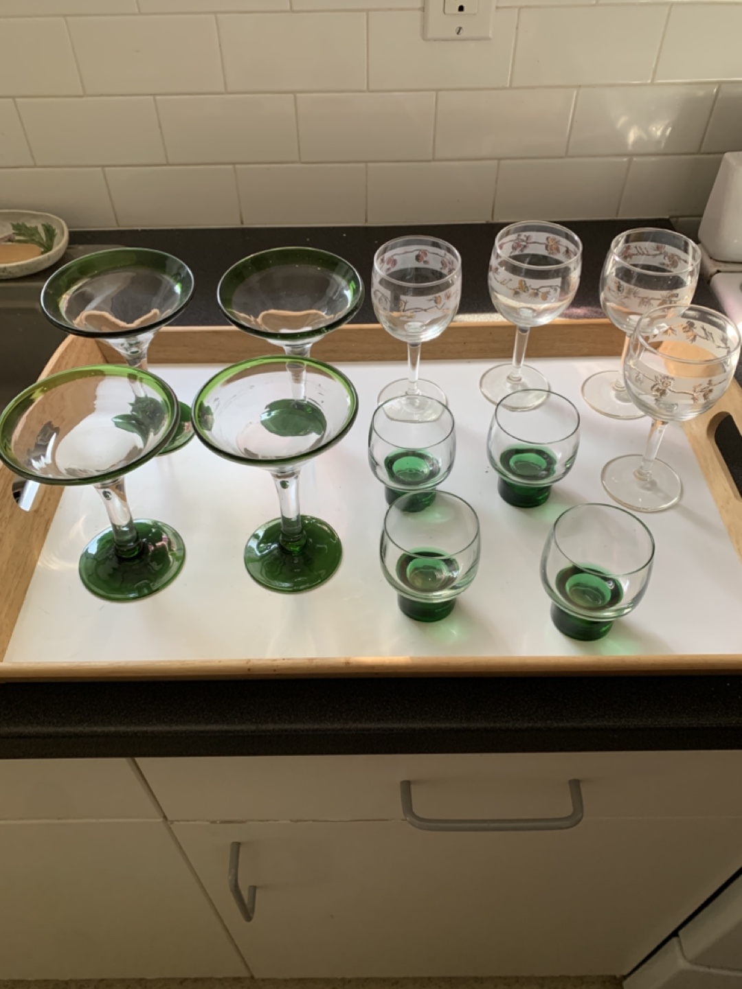 Set of 4 Green Rim Margarita Glasses plus shot and wine glasses