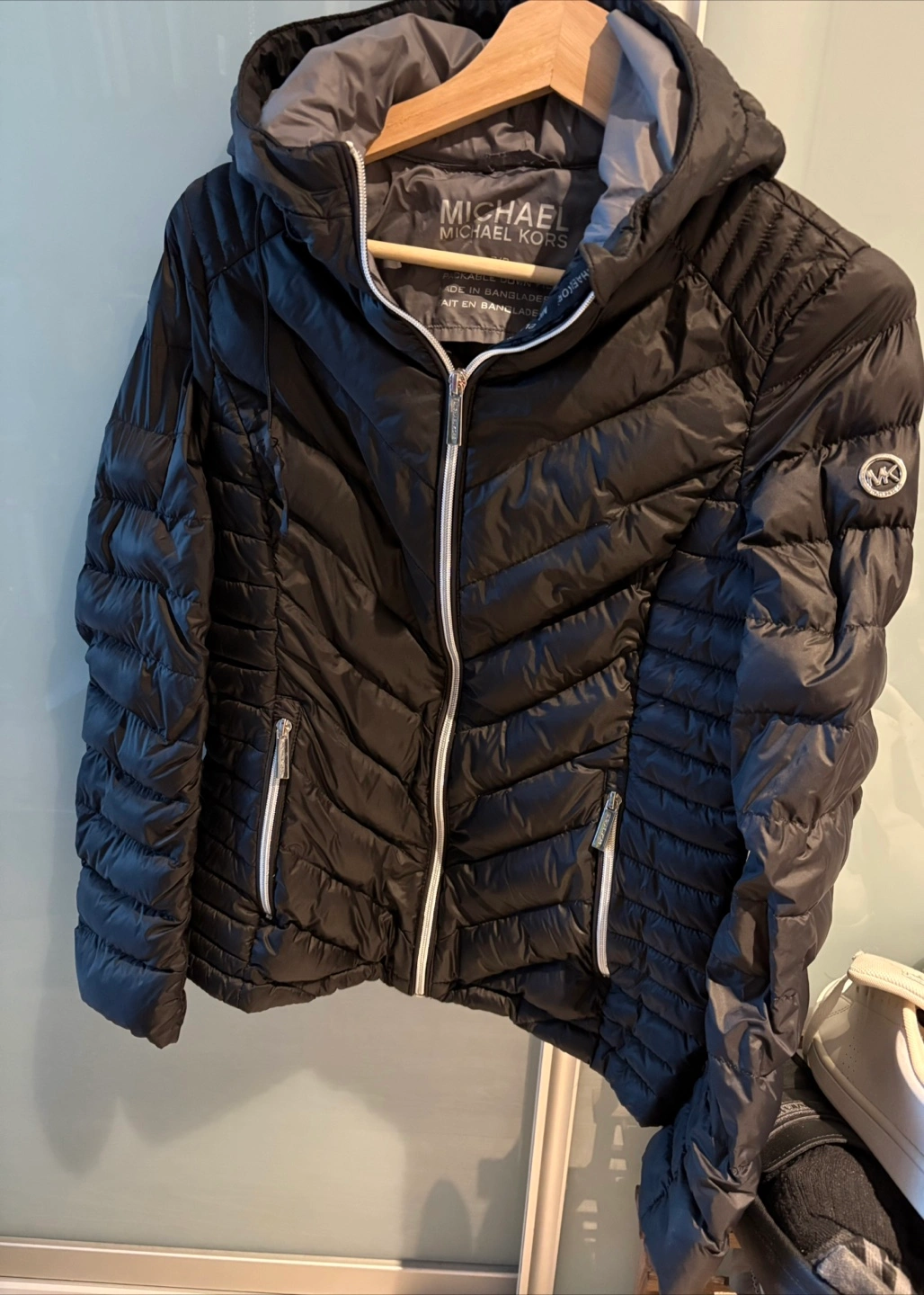 Selling a gently used Michael Kors Women’s black puffer jacket in size small. It's in great condition and perfect for the cooler weather! The jacket features a hood and a stylish design. Can be used in fall or winter!