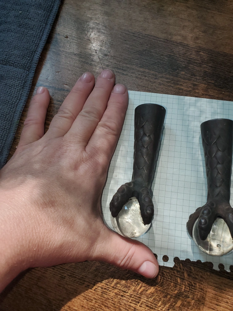Selling a set of three vintage furniture feet, featuring a claw and ball design. They are in good condition and ready to add a unique touch to your furniture project