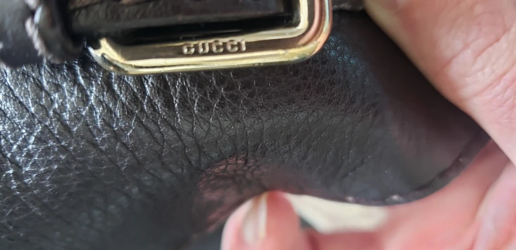 Well-loved Gucci hobo bag c. early 2000s. Gold hardware featuring iconic G as accent at base of strap. Interior in great condition but has exterior damage as shown: jacquard print rubbed at u/s of foldover (not visible if you decide to wear the bag w/ the flaps flipped over); strap and its stictching have some signs of wear. Third photo shows the base of the bag which has no damage.