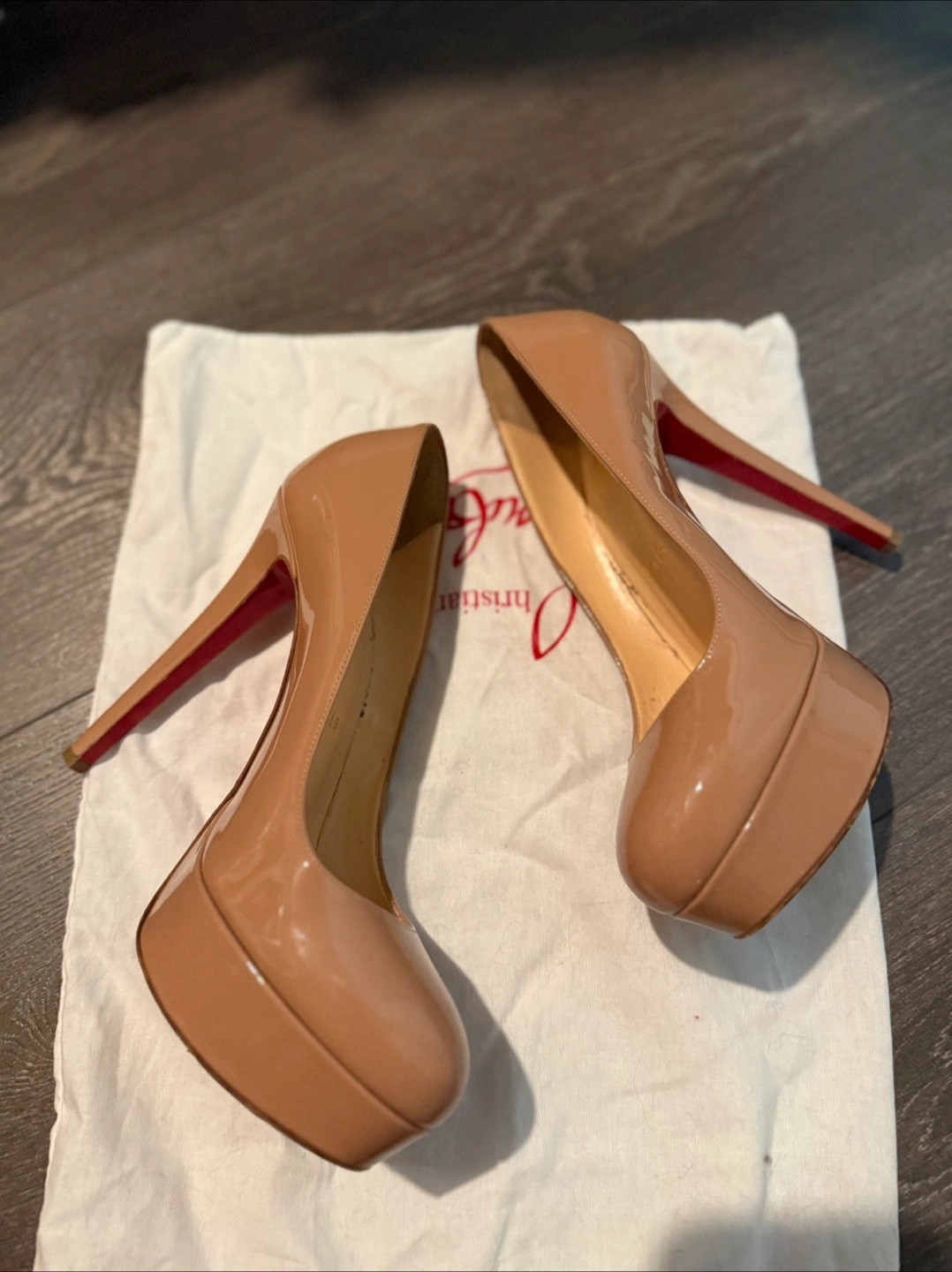 Christian Louboutin Bianca platform pumps. Nude patent leather. Red soles. Comes with dust bag. Size 38.