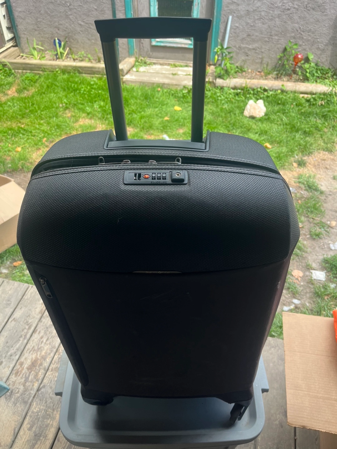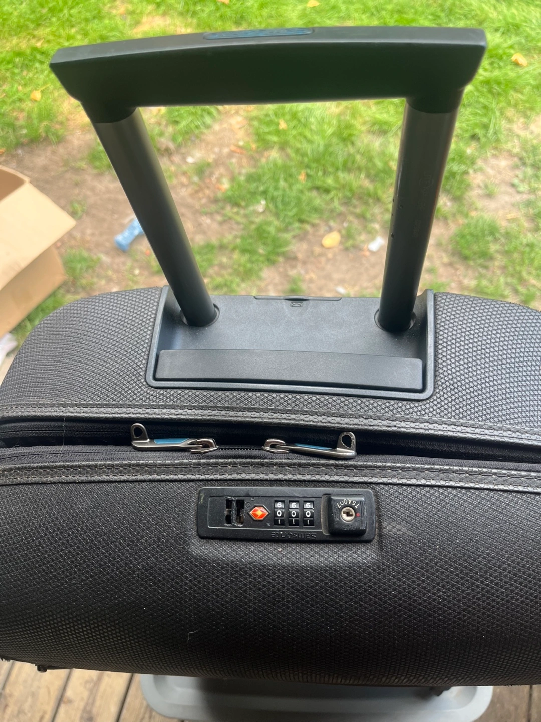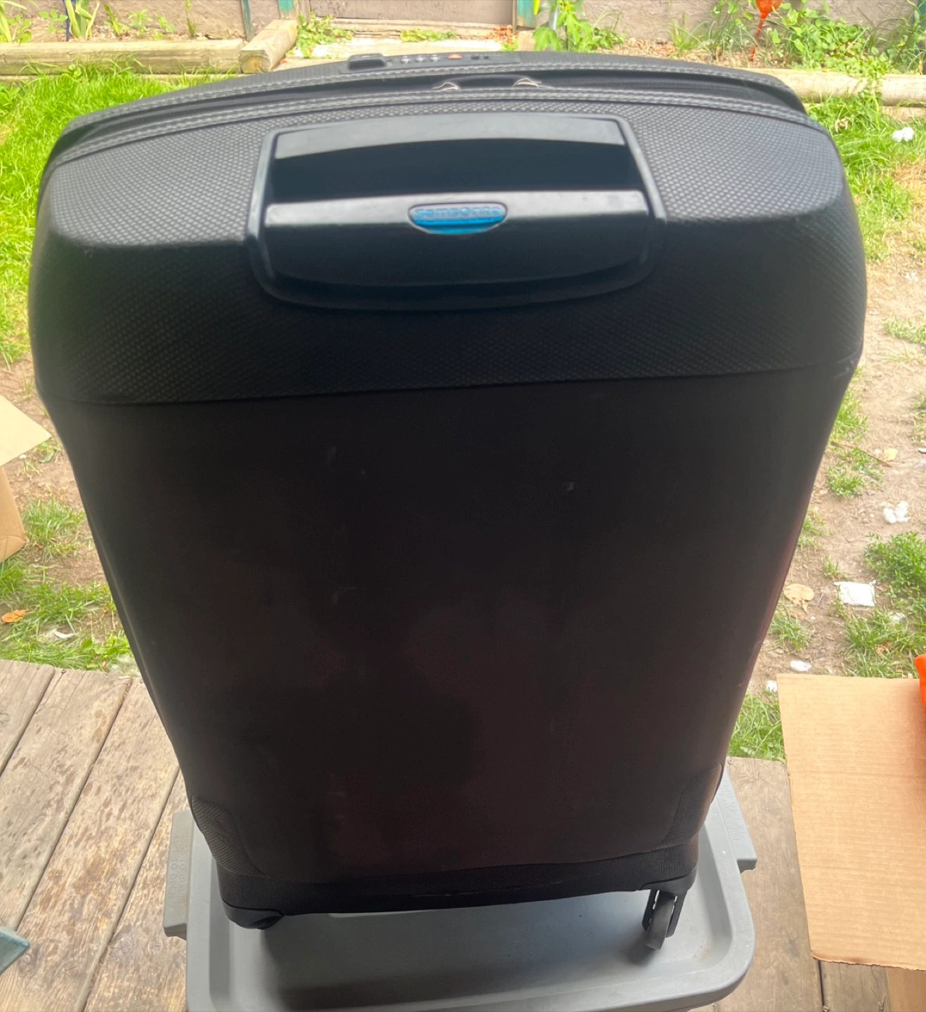 58Selling a black Samsonite carry-on suitcase. It's in good condition and ready for your next trip! Features a combination lock for security.