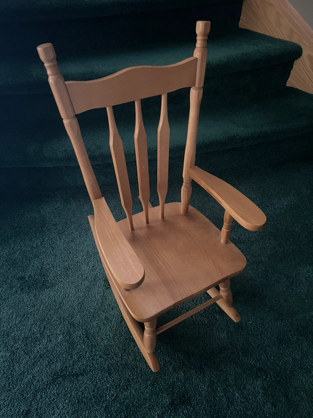 Selling a Child’s charming wooden rocking chair! It's in great shape and ready to add a cozy touch to your home. Perfect for relaxing evenings or gentle rocking