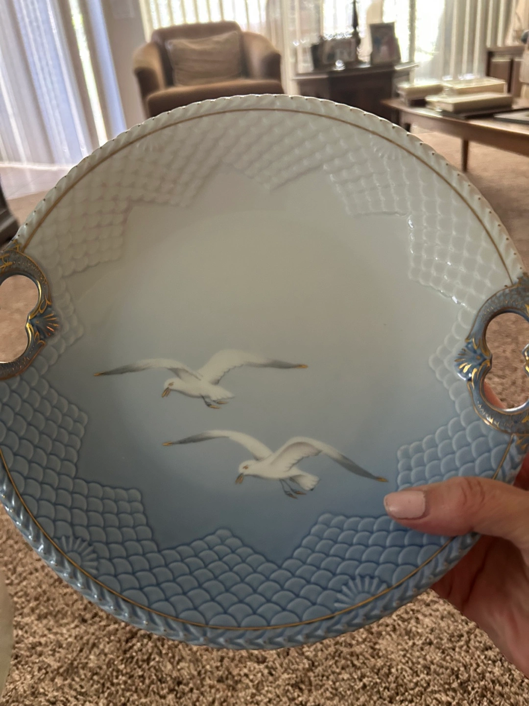Selling a lovely Royal Copenhagen Seagull dish! It's in great condition and features a beautiful seagull design. It is marked as 'Made in Denmark' and has the number 101 on the bottom
