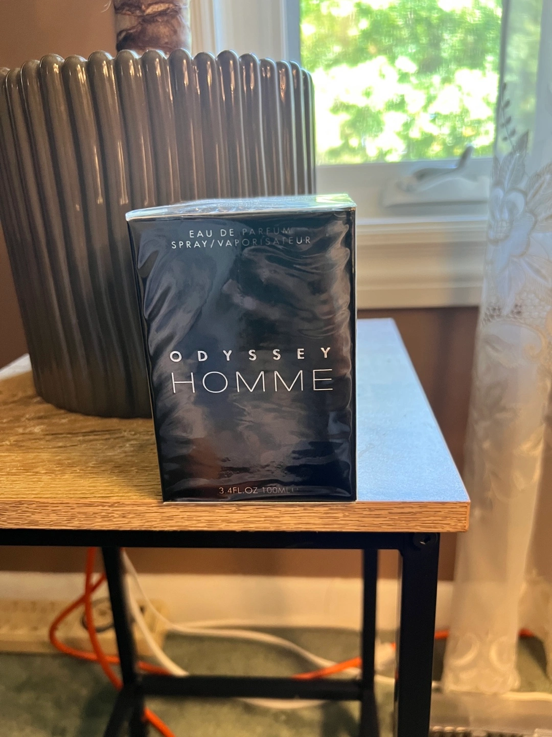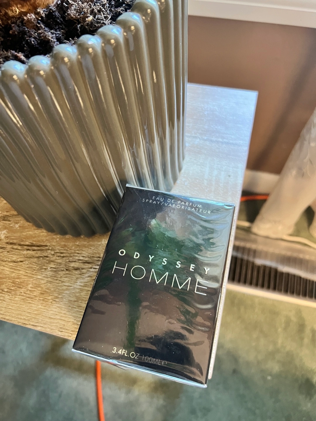 Selling a bottle of Odyssey Homme Eau de Parfum. It's a 3.4 fl oz (100ml) bottle for men. The fragrance is made in France
