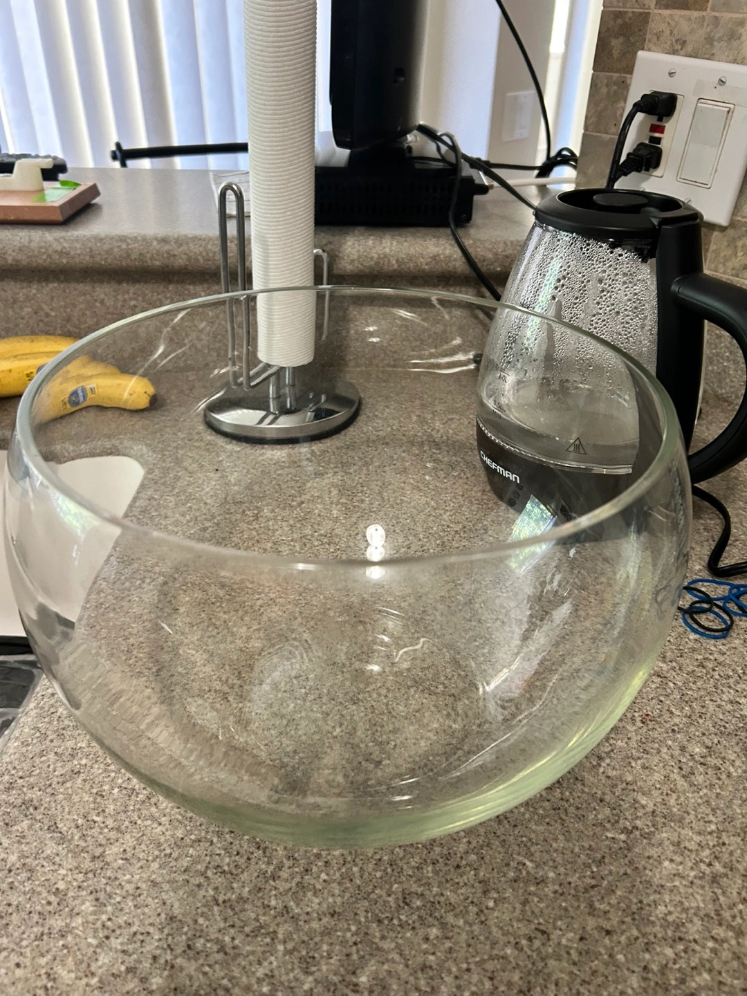 Selling a large clear glass serving bowl. It's in great condition and perfect for serving salads, desserts, or as a decorative centerpiece