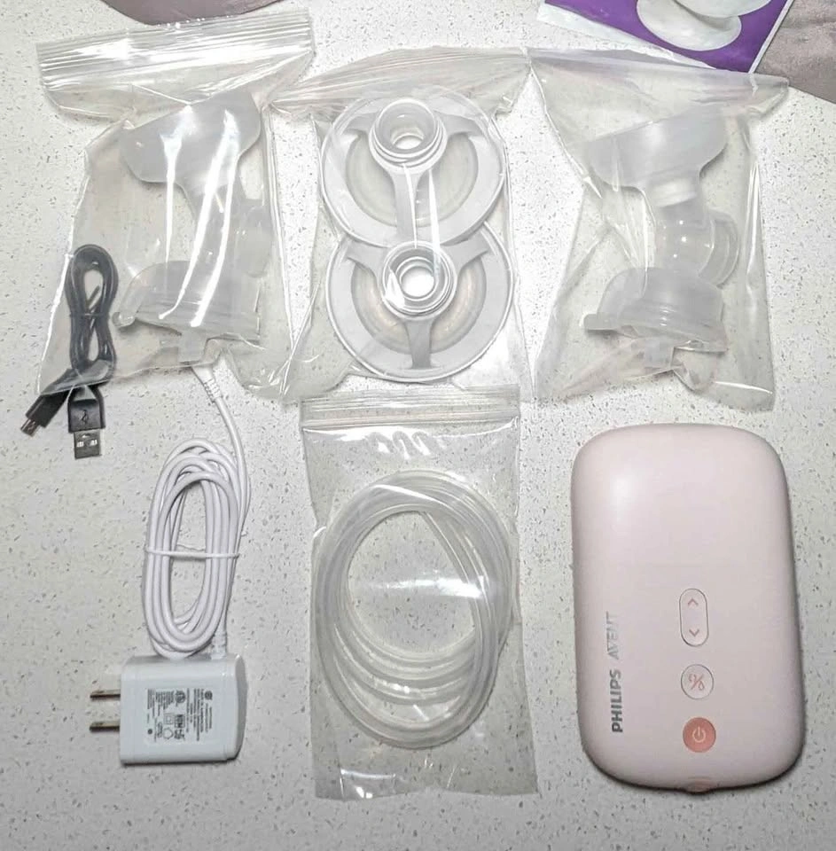 Philips Avent Double Electric Breast Pump! It comes with all the components you see in the pictures, including the charger and carrying bag. It's in new condition and ready for a new moms. Perfect for busy moms!